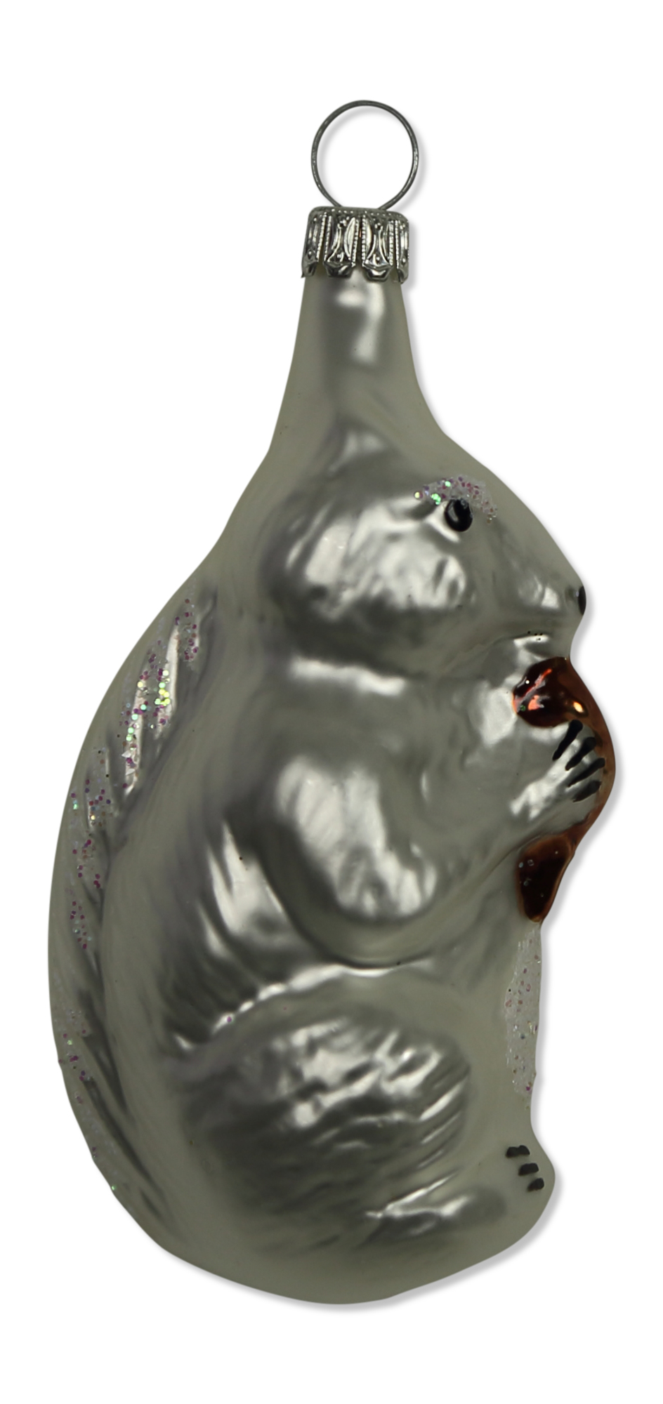Eichhörnchen weiß matt, L 8cm, Christbaumschmuck, Weihnachtsbaumschmuck aus Glas