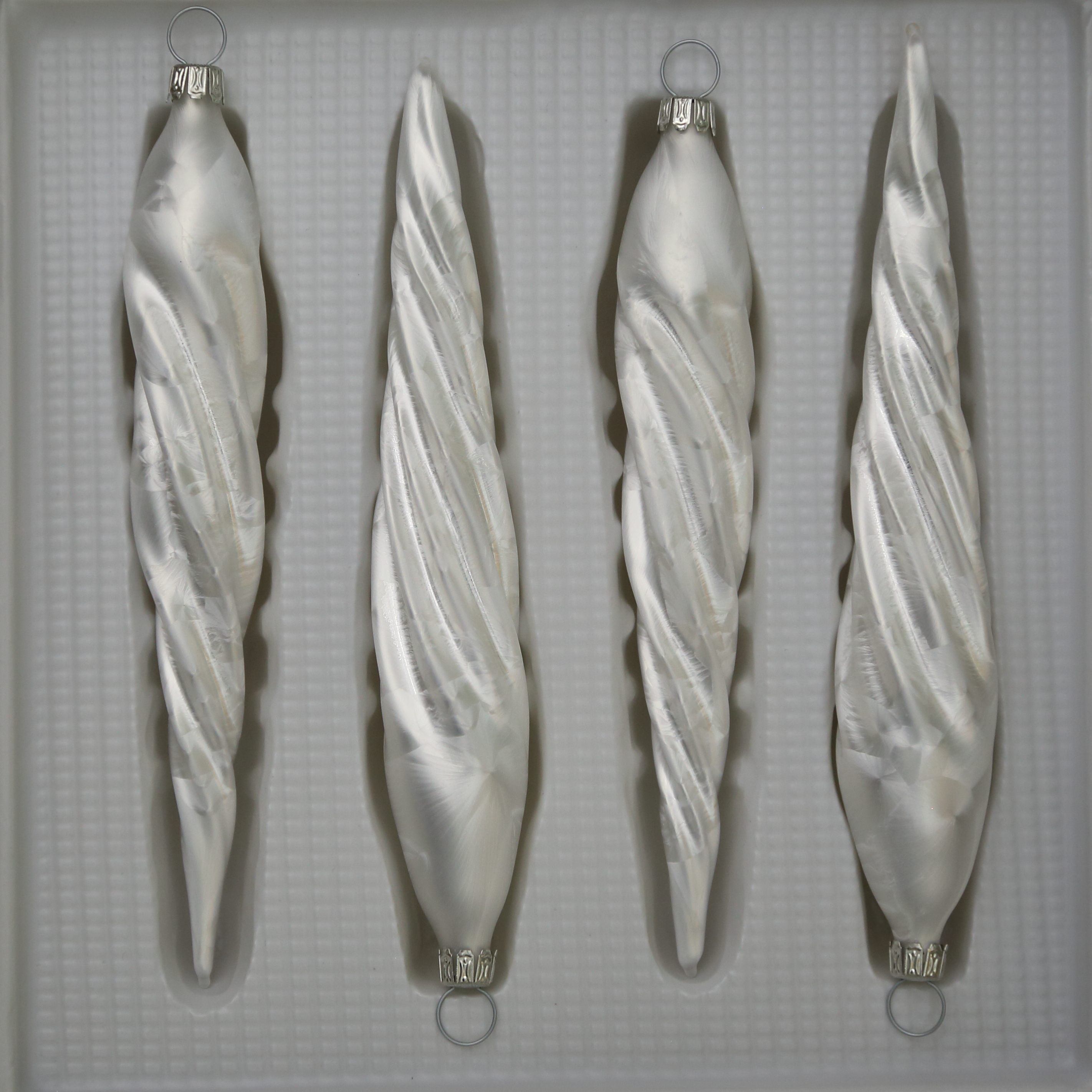 Eiszapfen dünn uni Eislack weiß, 4 Stück, L 13cm
