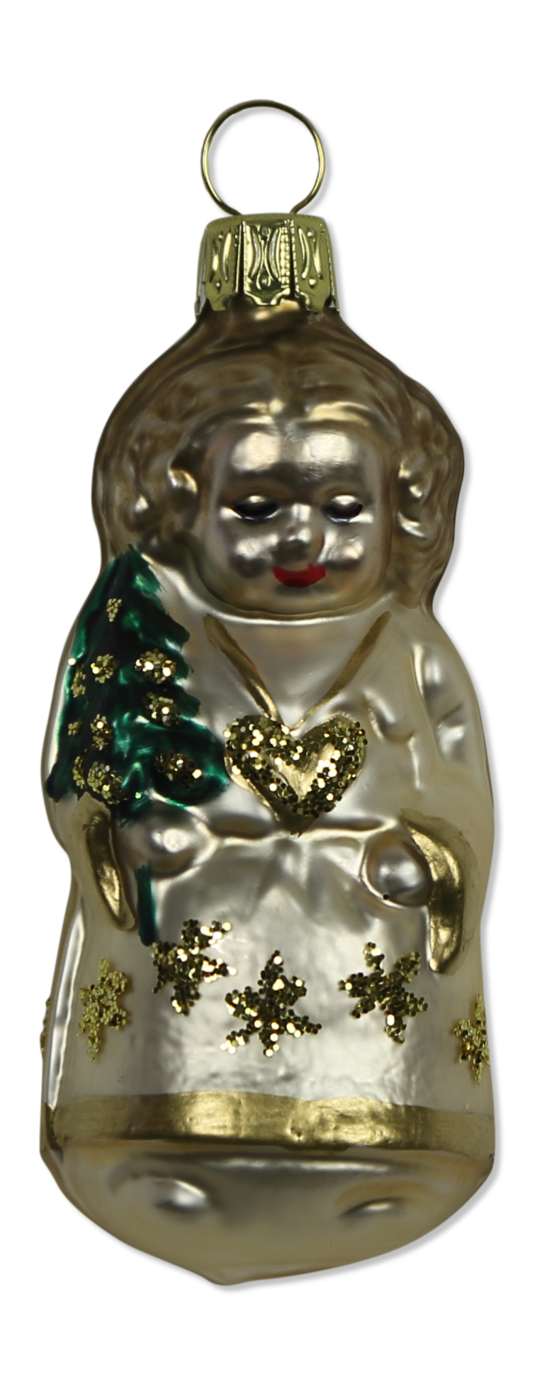 Engel mit Herzkette, messinggold und champagner matt, L 9cm