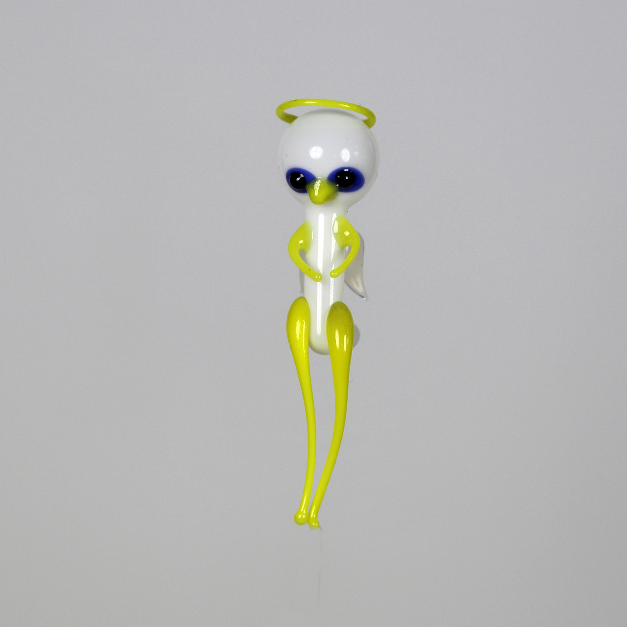 weiß/gelb, L ca. 6cm Handhabung: PET- Flasche bis zum Rand mit Leitungswasser füllen, Schraubverschluss drauf und seitlich auf die Flasche drücken- bis sich der Flaschenengel nach unten zu drehen beginnt. Wenn er am Flaschenboden angelangt ist, wieder loslassen und so steigt der Engel wieder hoch. Einfach und genial . .