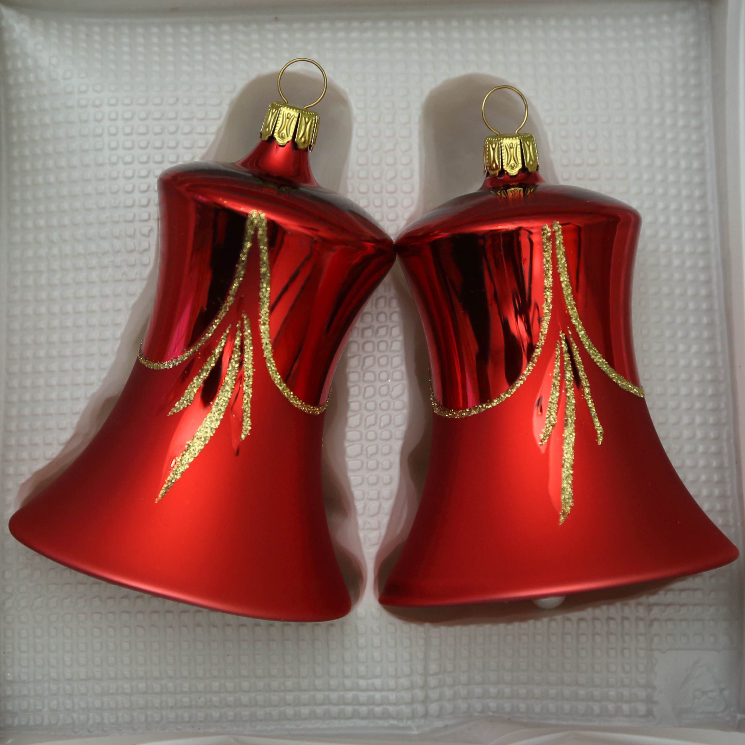 Glocken groß mit Schlägel rot glanz, matt, 2 Stück, d 7cm