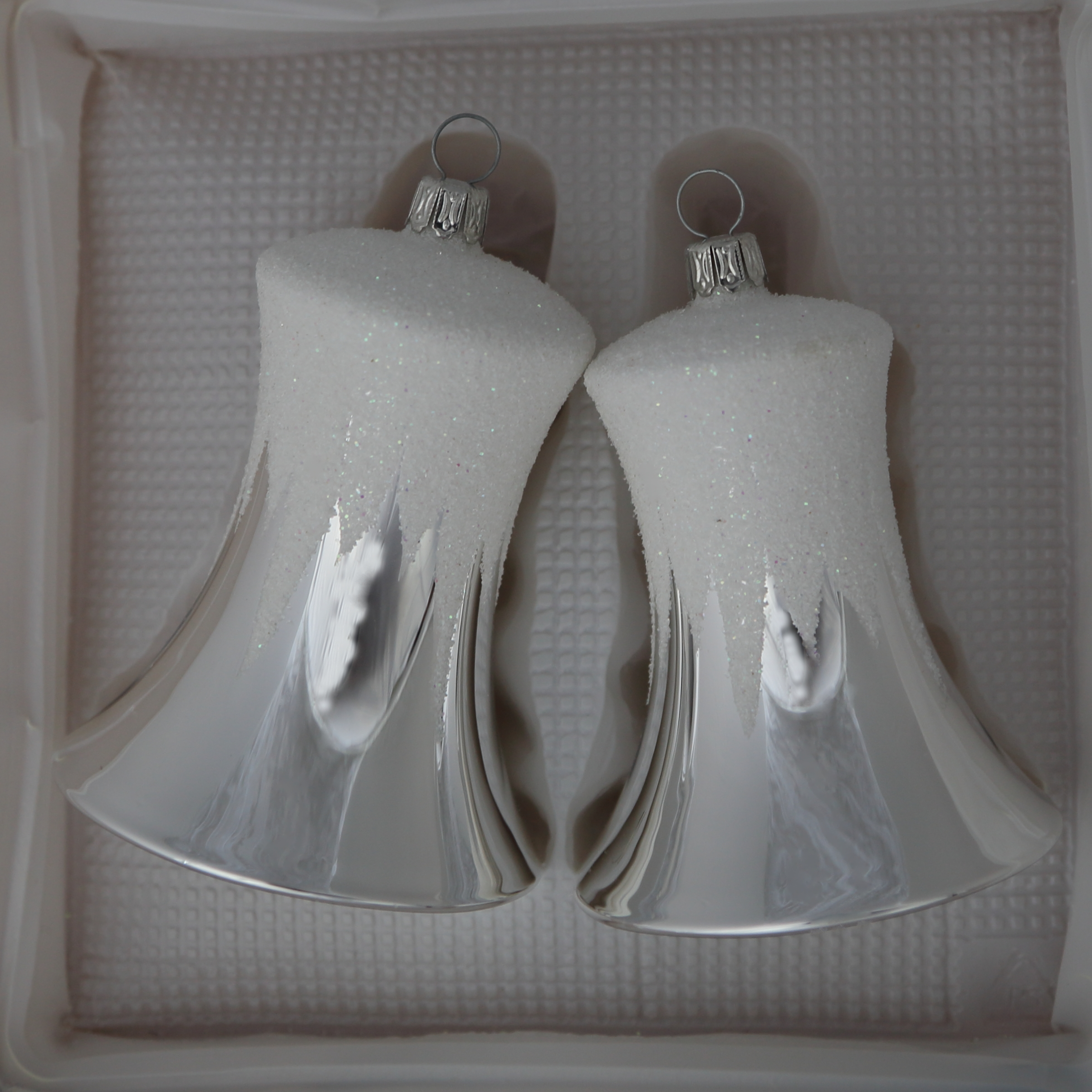 Glocken groß mit Schlägel silber mit Schneedachdekor, 2 Stück, d 7cm