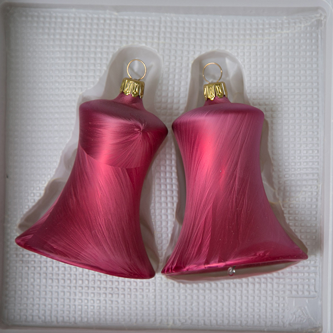 Glocken  groß mit Schlägel uni Eislack beere, 2 Stück, d 7cm, 2. Wahl