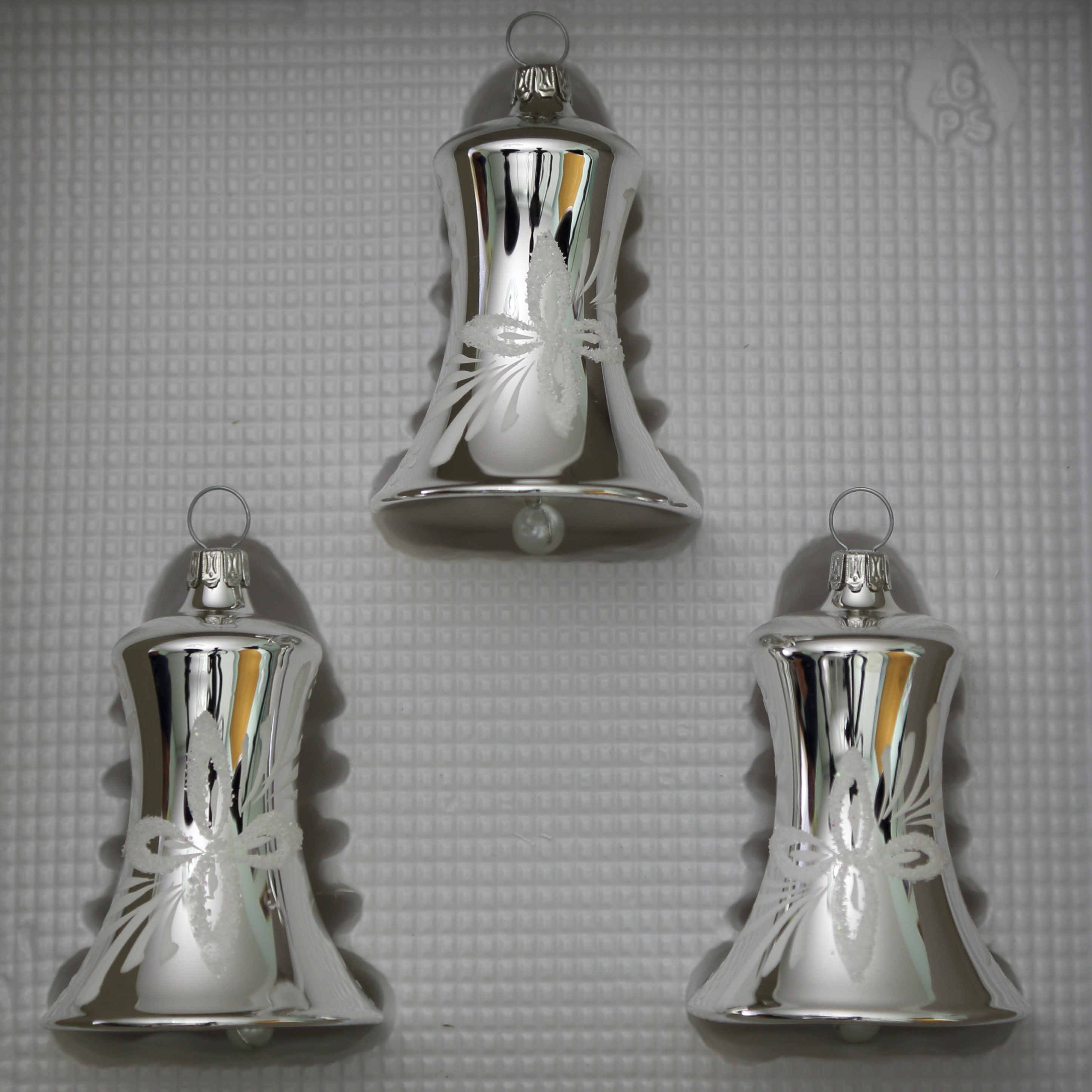 Glocken klein mit Schlägel silber mit Blumendekor, 3 Stück, d 5cm