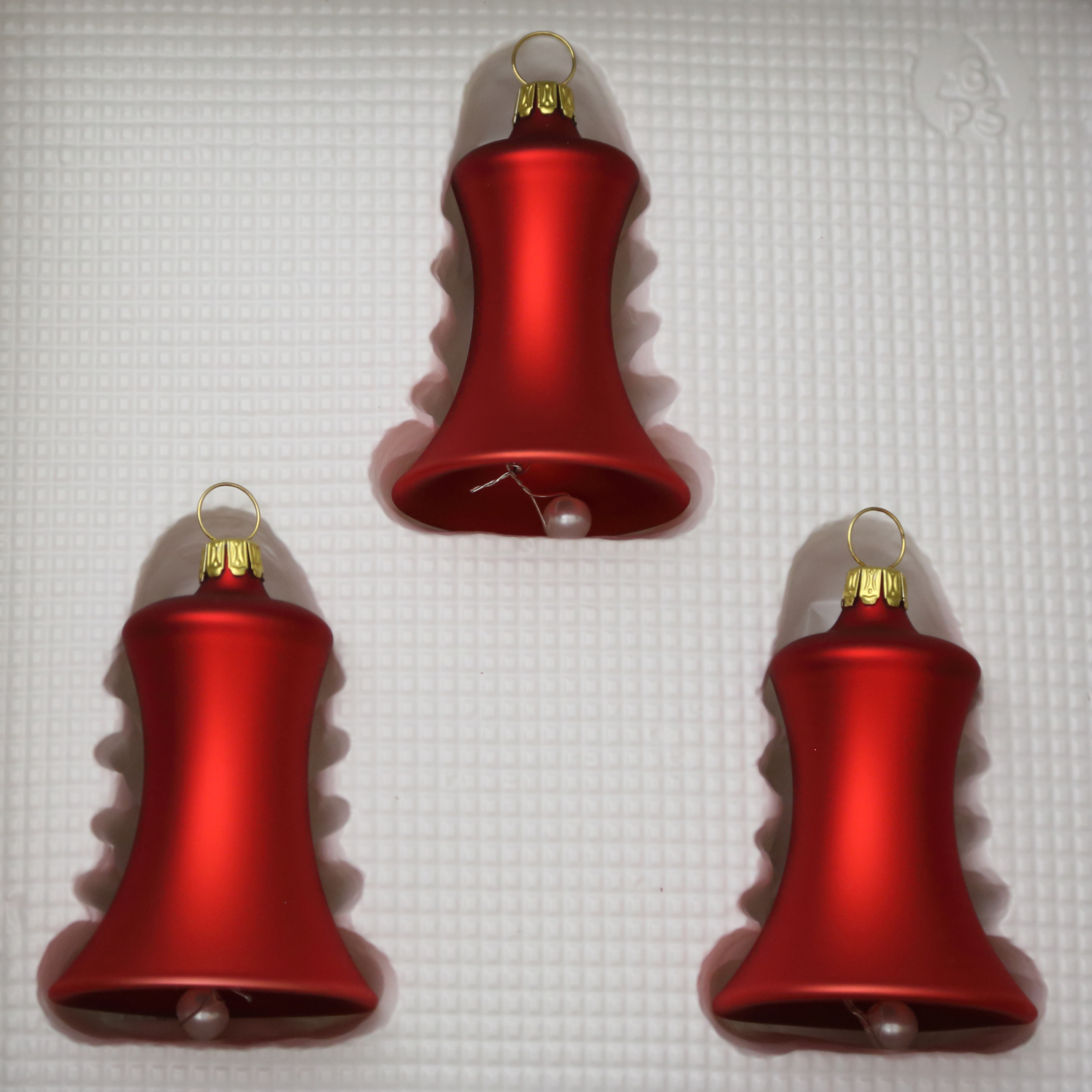 Glocken klein mit Schlägel uni rot matt, 3 Stück, d 5cm