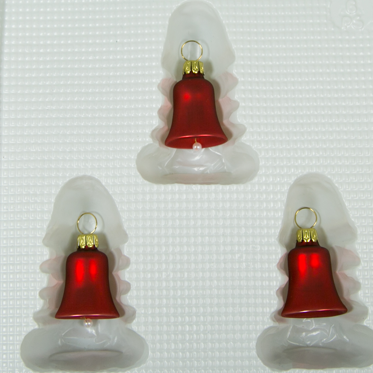 Glöckchen klein mit Schlägel uni rot matt, 3 Stück, d 2,5cm, L ca. 4cm