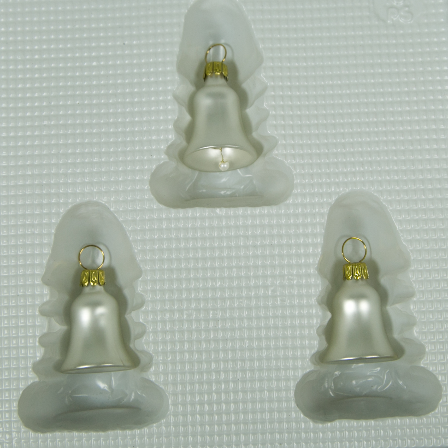 Glöckchen klein mit Schlägel uni weiß matt, 3 Stück, d 2,5cm, L ca. 4cm