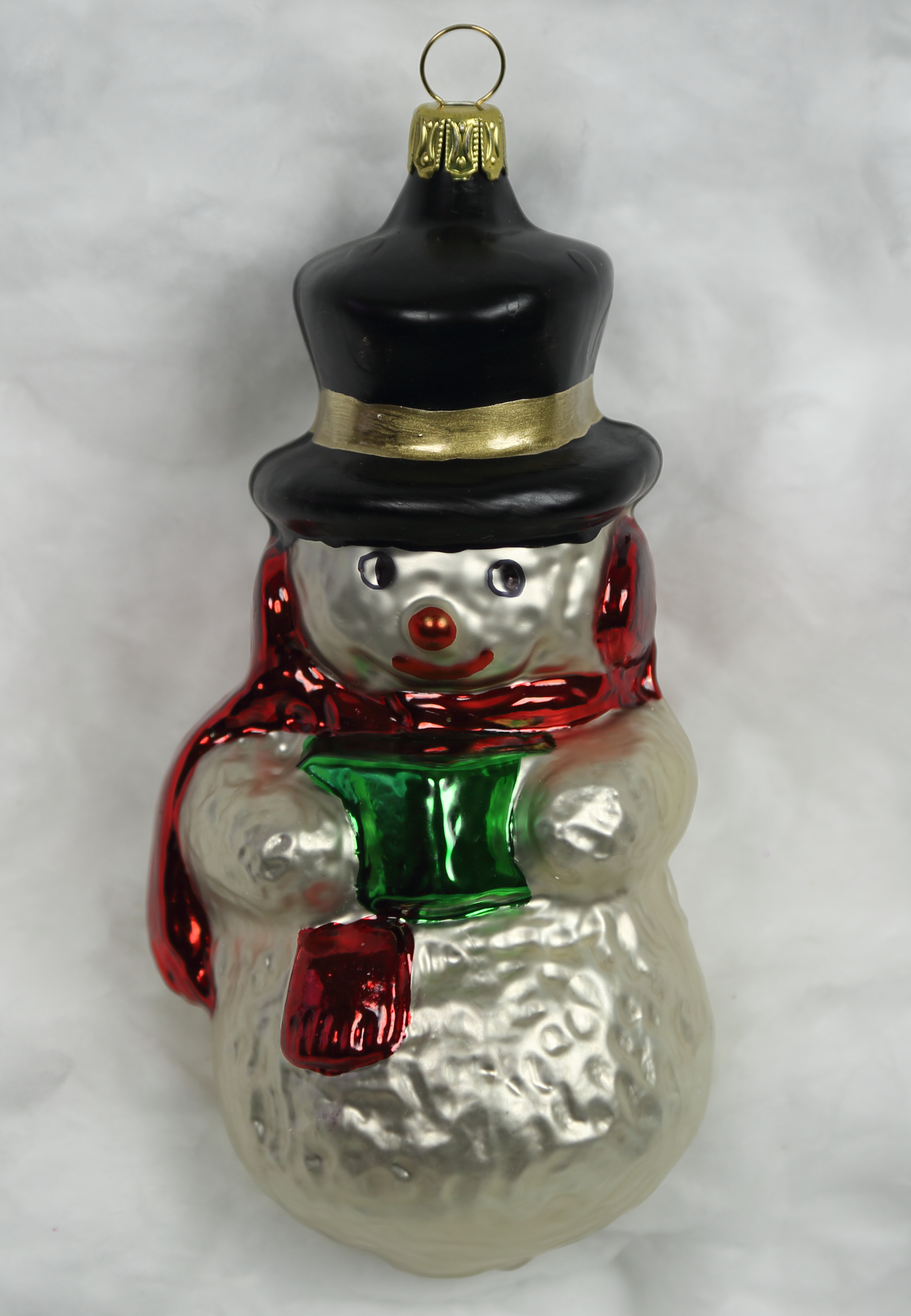 großer Schneemann weiß matt, L 12cm, Christbaumschmuck, Weihnachtsbaumschmuck aus Glas