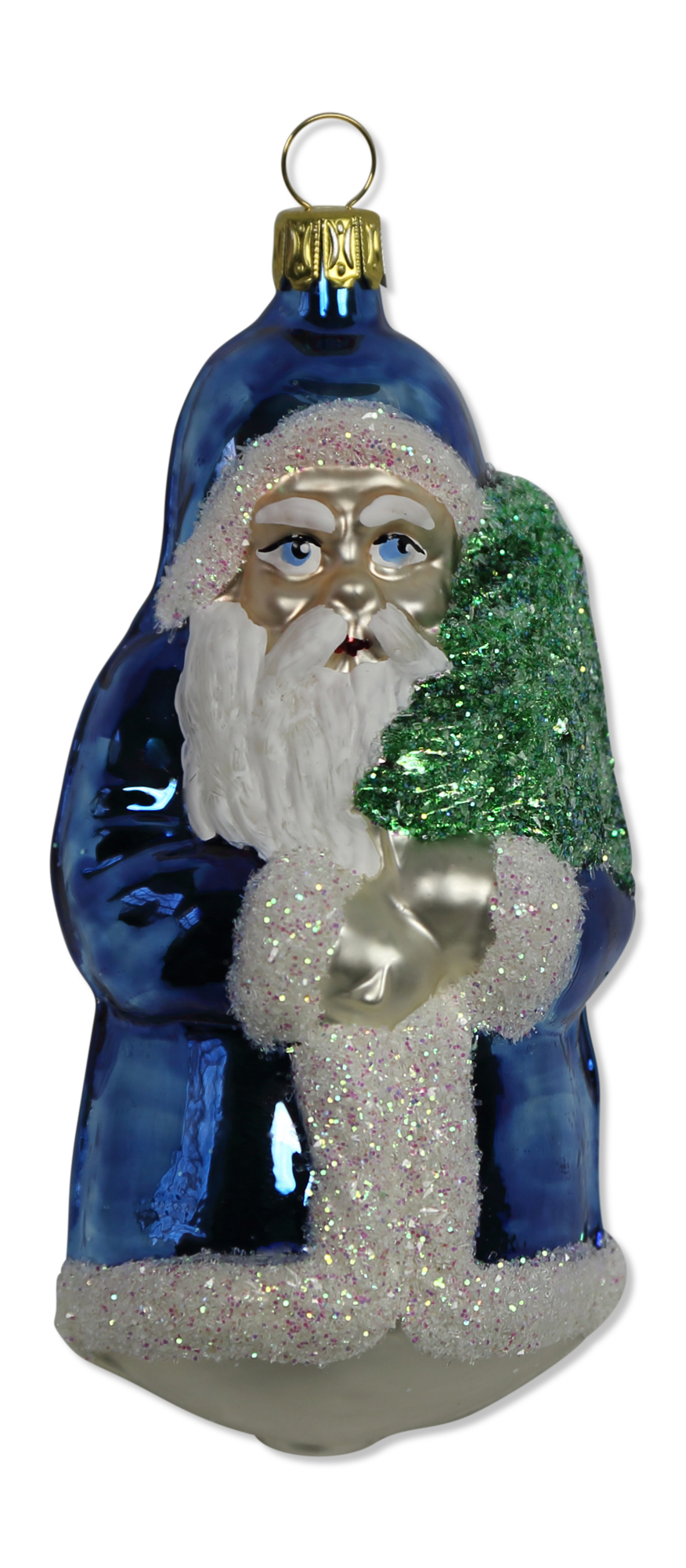 großer Weihnachtsmann blau, L 11cm, Christbaumschmuck, Weihnachtsbaumschmuck aus Glas