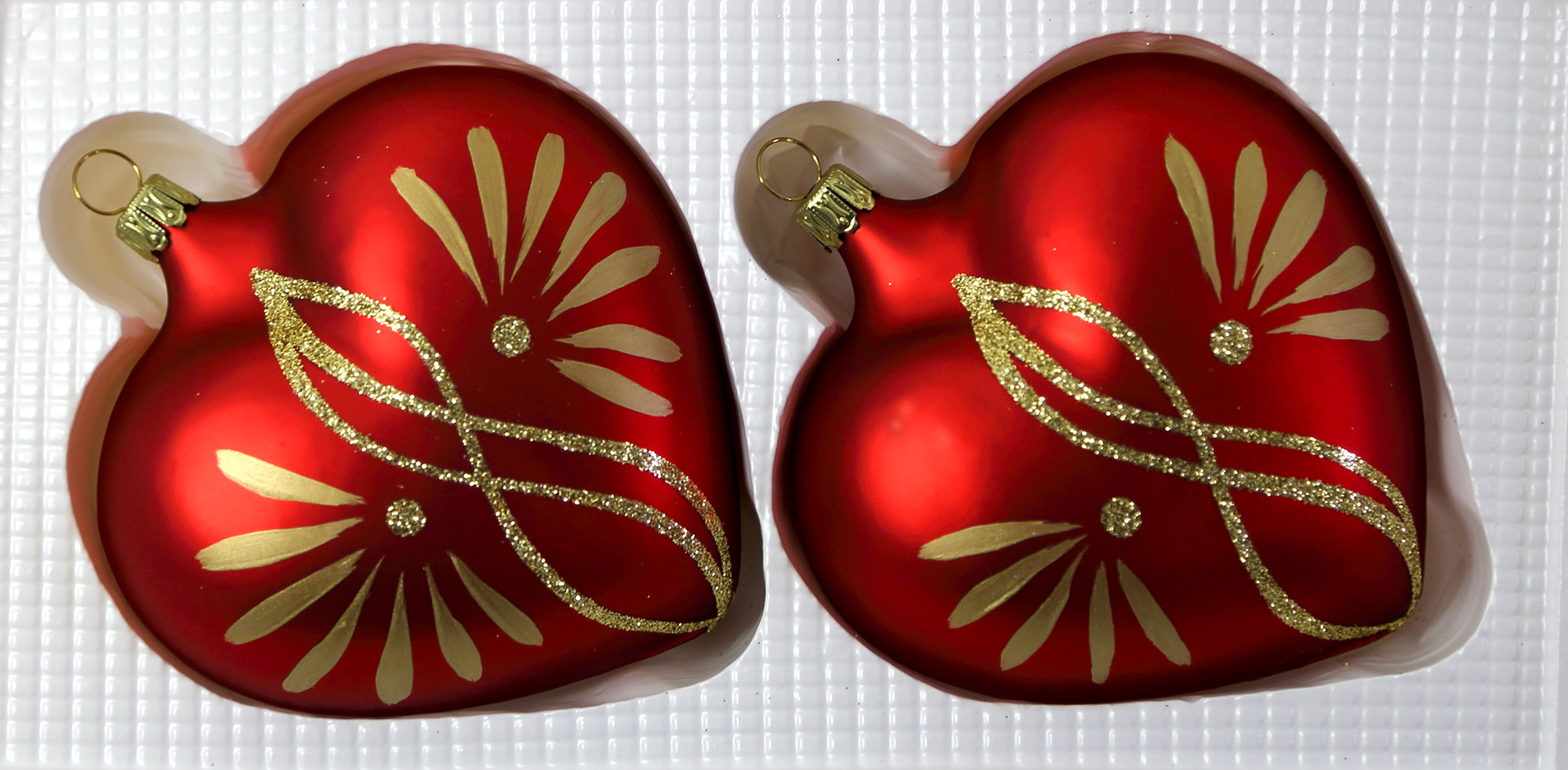 Herzen groß rot matt mit Rankendekor, 2 Stück, L ca. 10cm