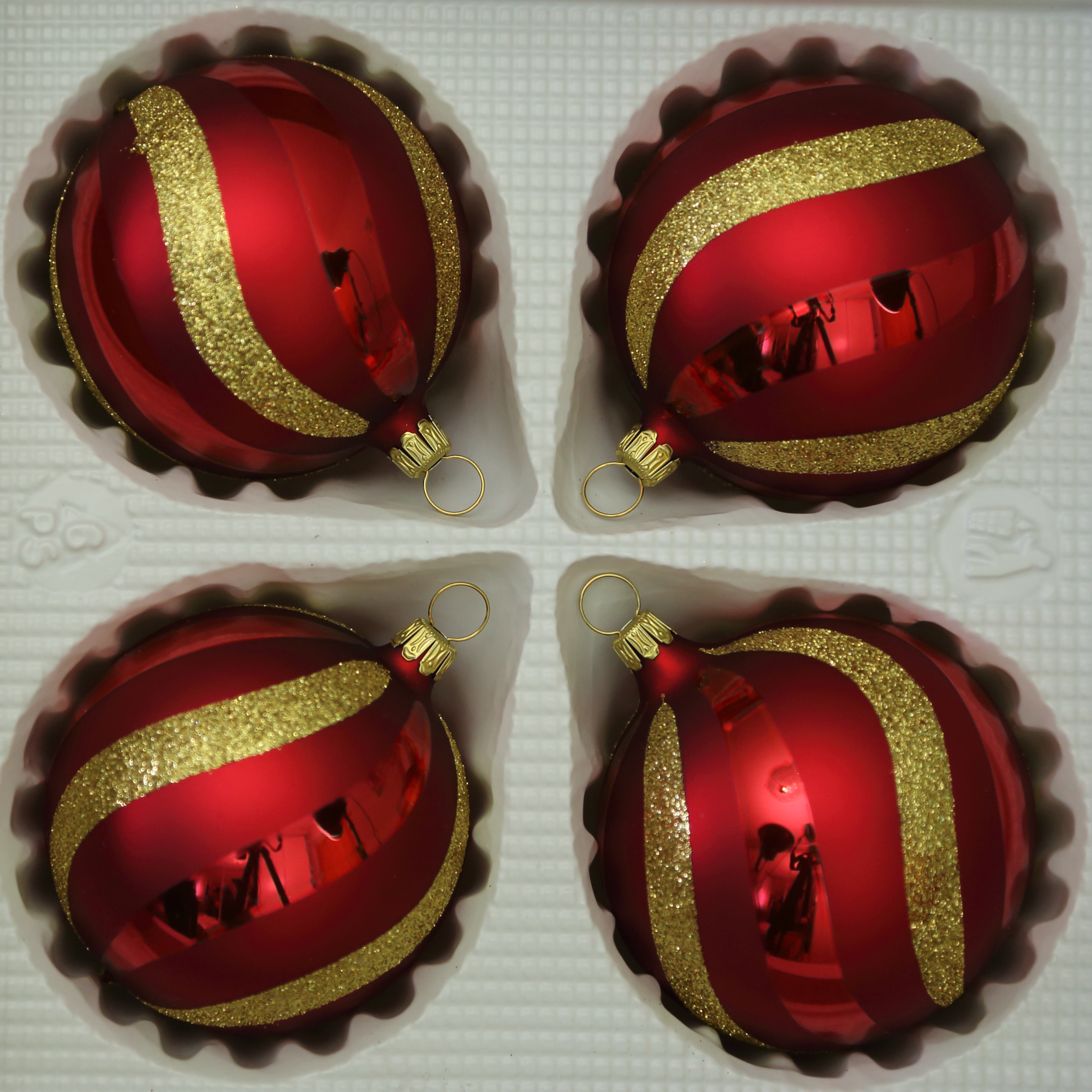 Kugeln dunkelrot matt mit Dekor, 4 Stück, d 7cm