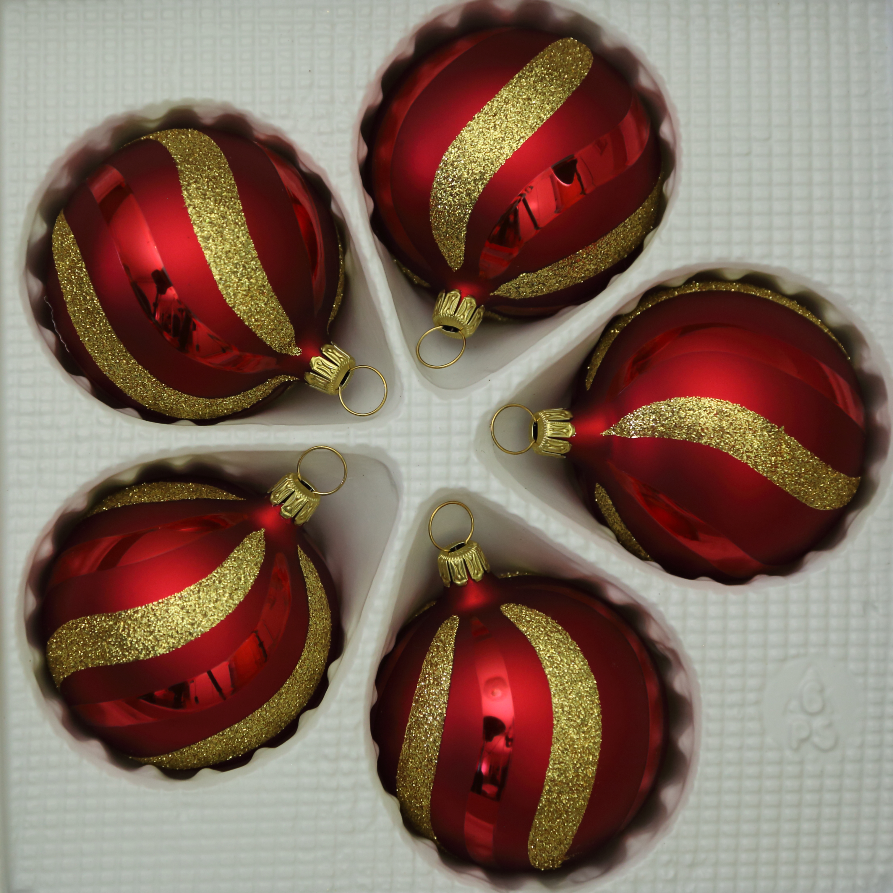 Kugeln dunkelrot matt mit Dekor, 5 Stück, d 6cm