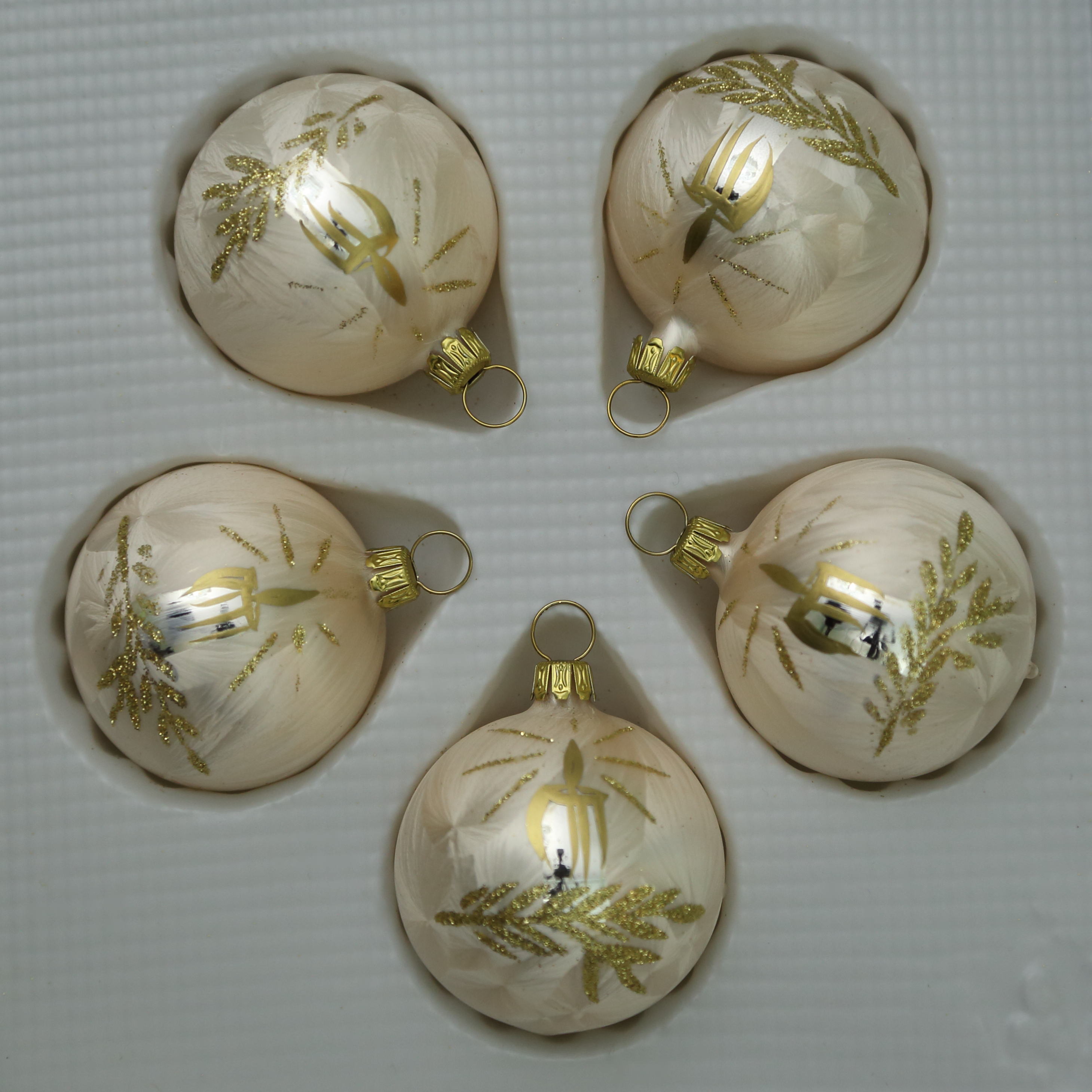 Kugeln Eislack champagner mit Kerzendekor, 5 Stück, d 5cm