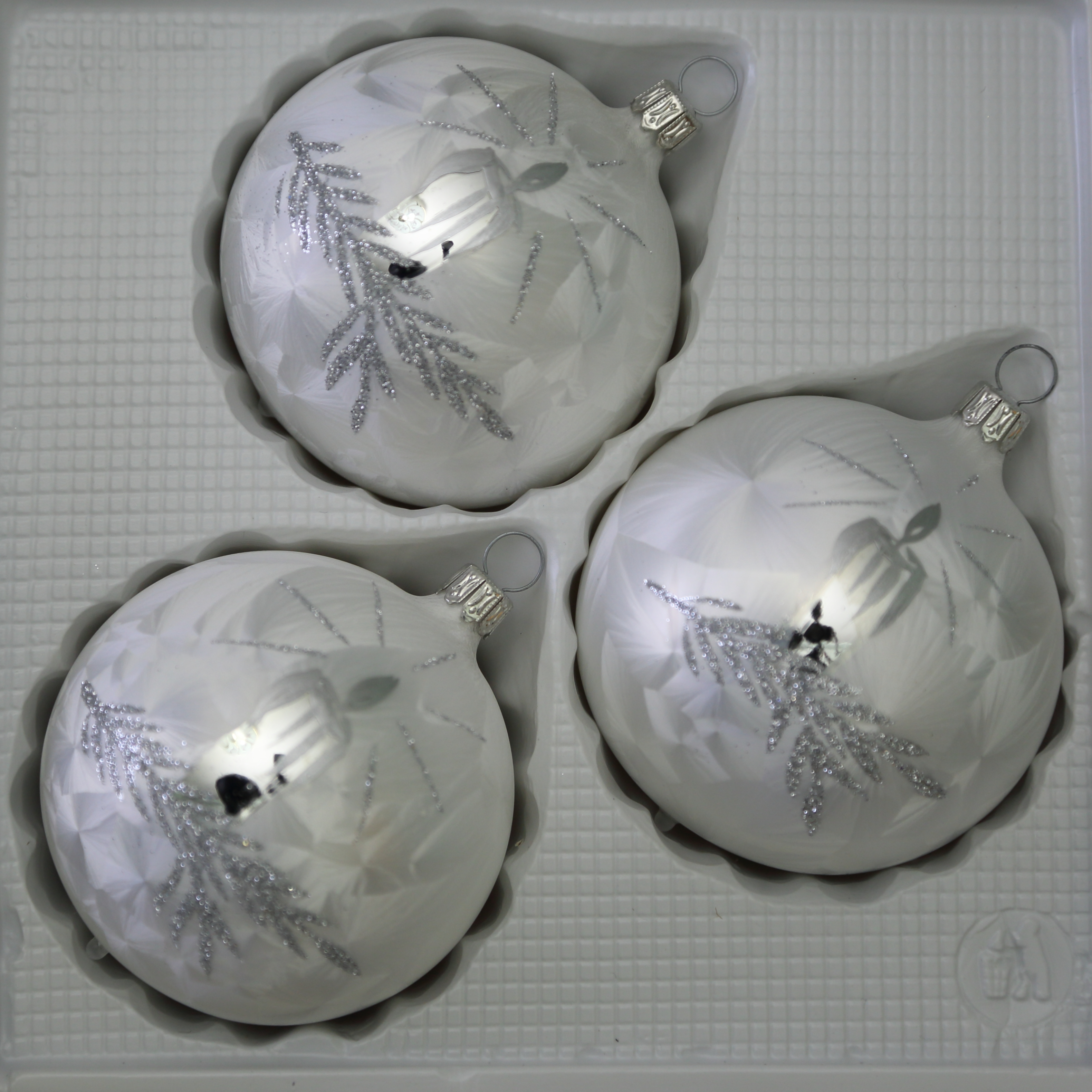 Kugeln Eislack weiß mit Kerzendekor, 3 Stück, d 8cm