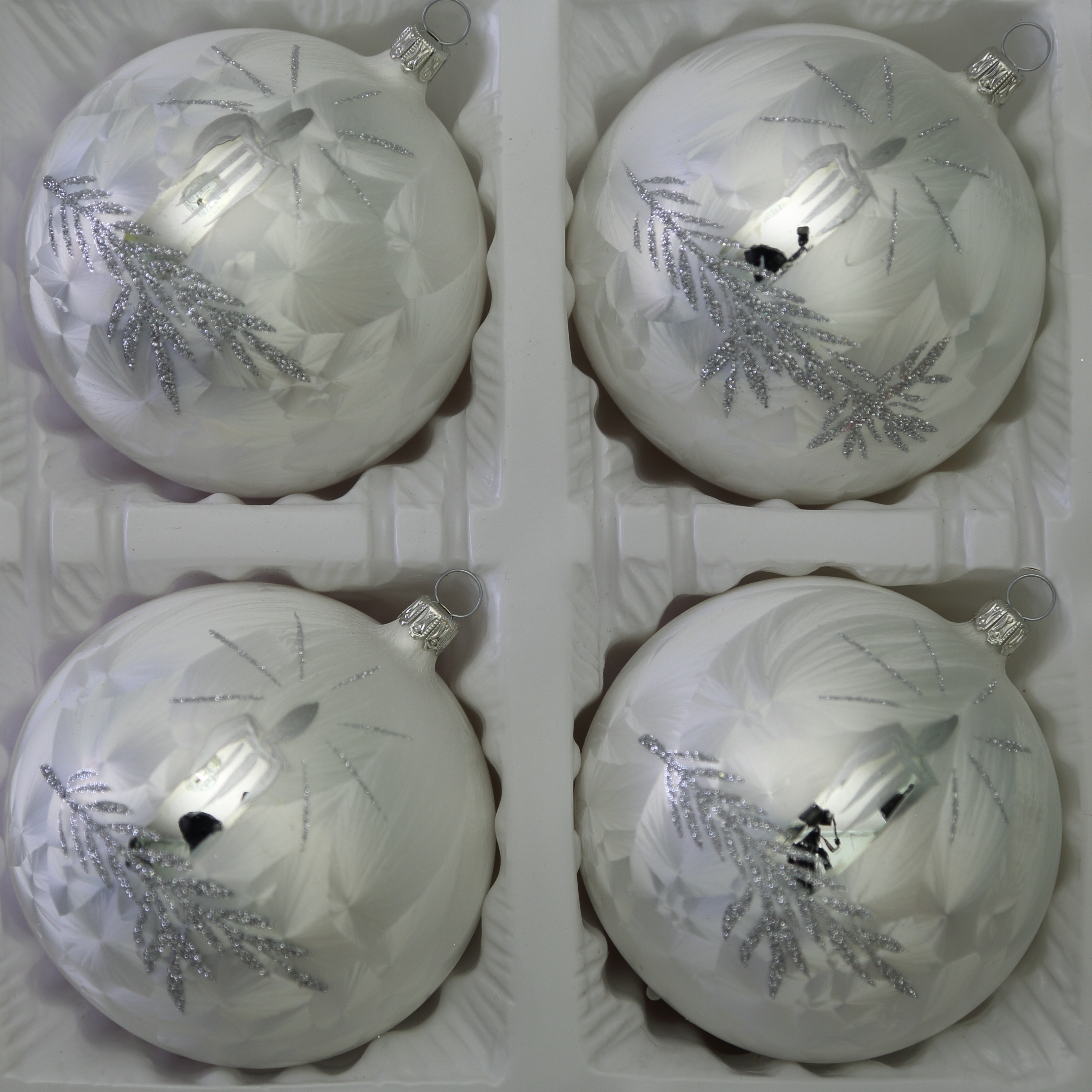 Kugeln Eislack weiß mit Kerzendekor, 4 Stück, d 10cm, Christbaumschmuck,
