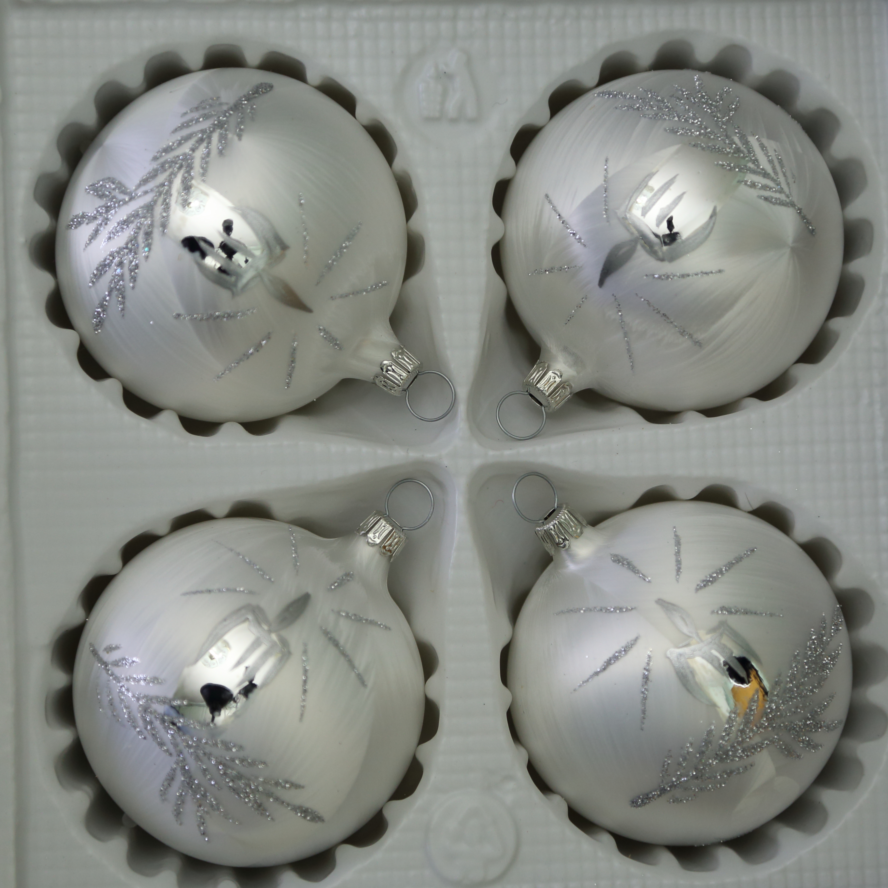 Kugeln Eislack weiß mit Kerzendekor, 4 Stück, d 7cm