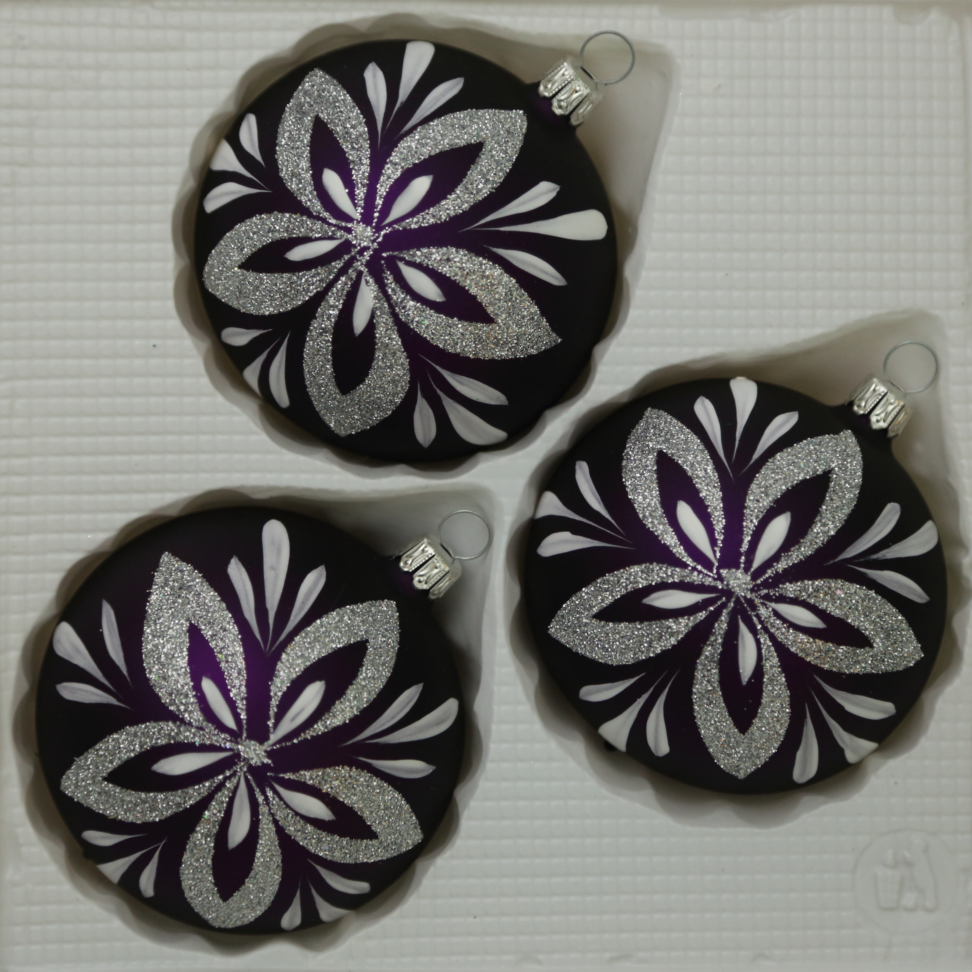 Kugeln lila matt mit Blumendekor, 3 Stück, d 8cm