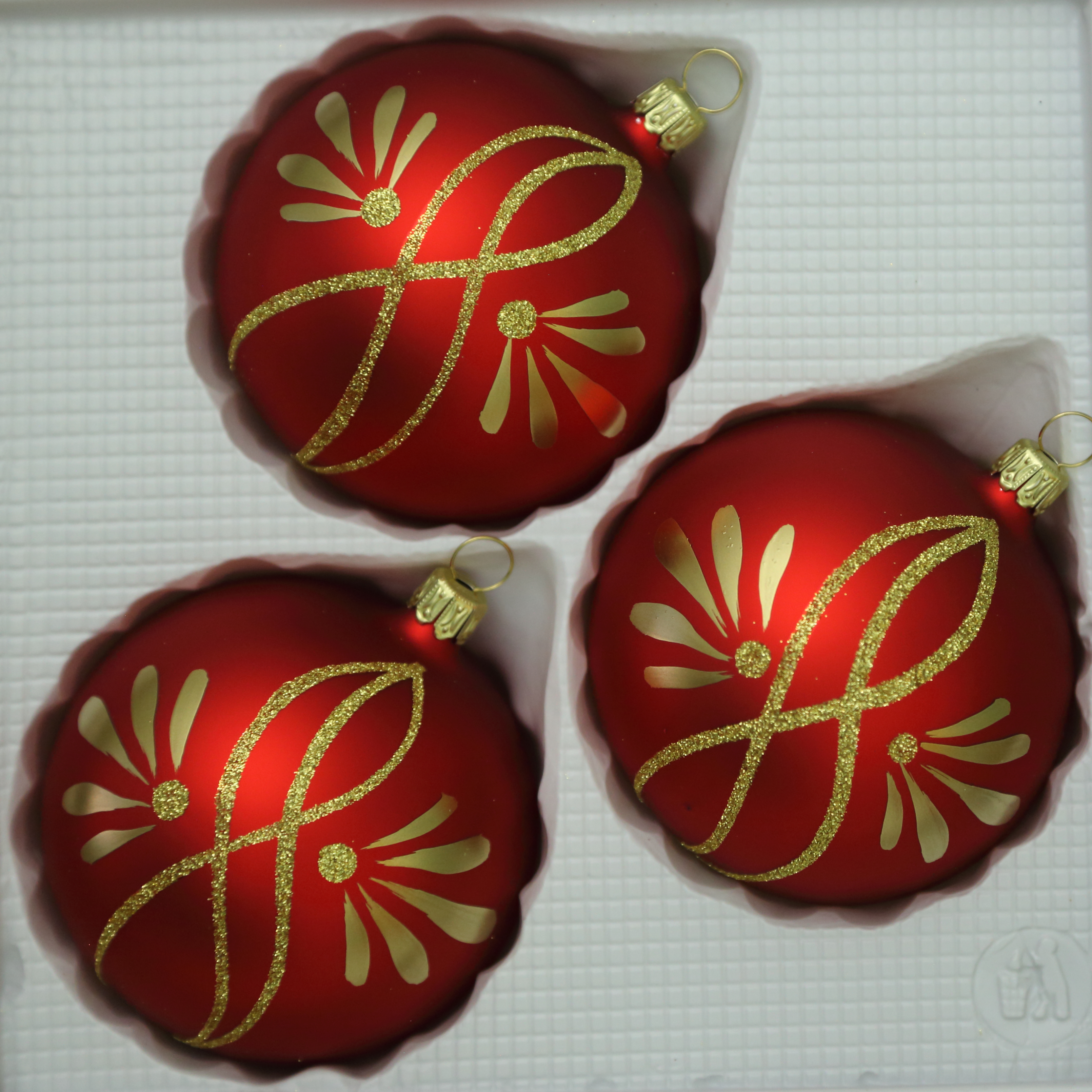 Kugeln rot matt mit Rankendekor, 3 Stück, d 8cm