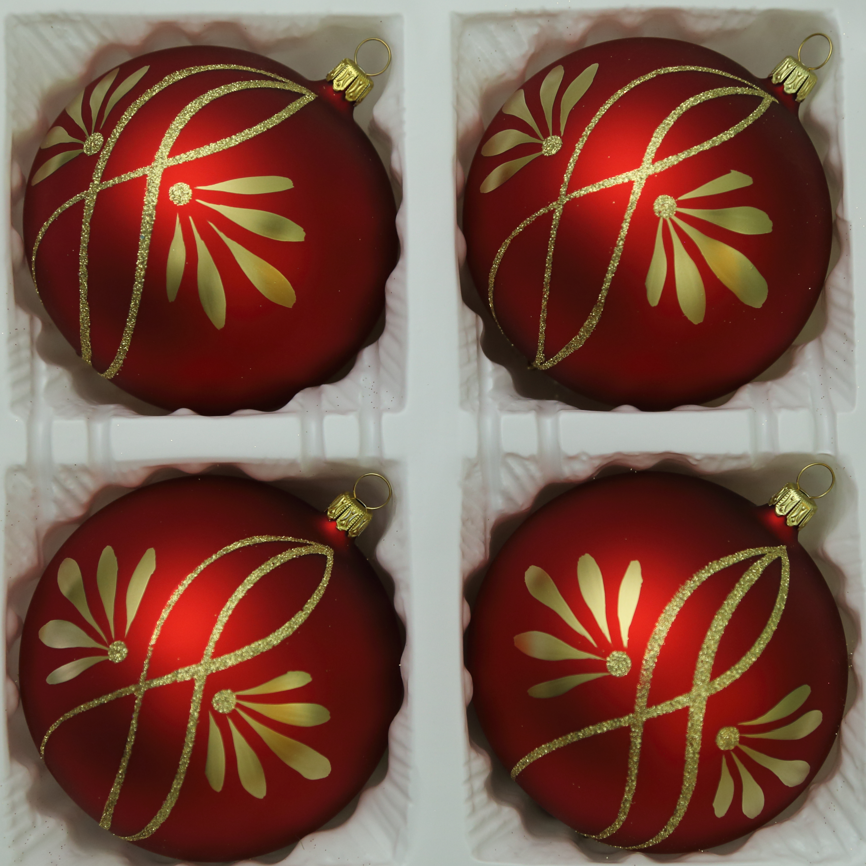 Kugeln rot matt mit Rankendekor, 4 Stück, d 10cm