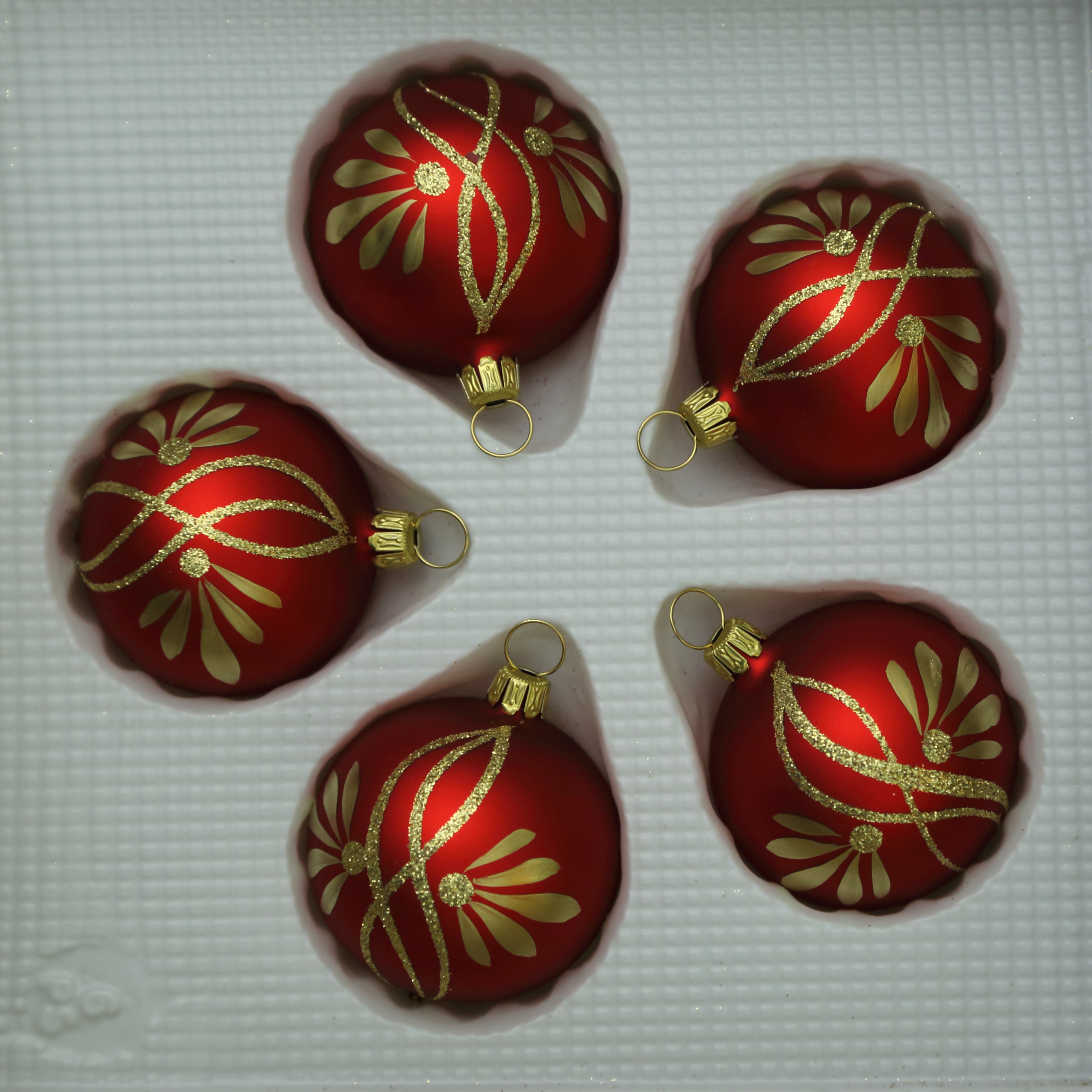 Kugeln rot matt mit Rankendekor, 5 Stück, d 5cm