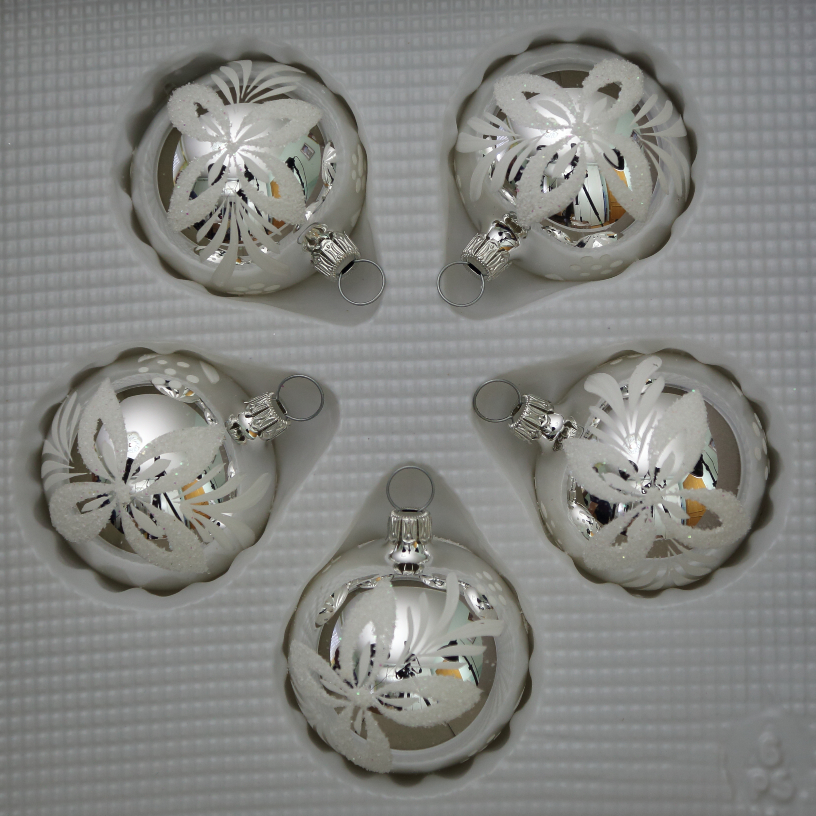 Kugeln silber mit Blumendekor, 5 Stück, d 5cm