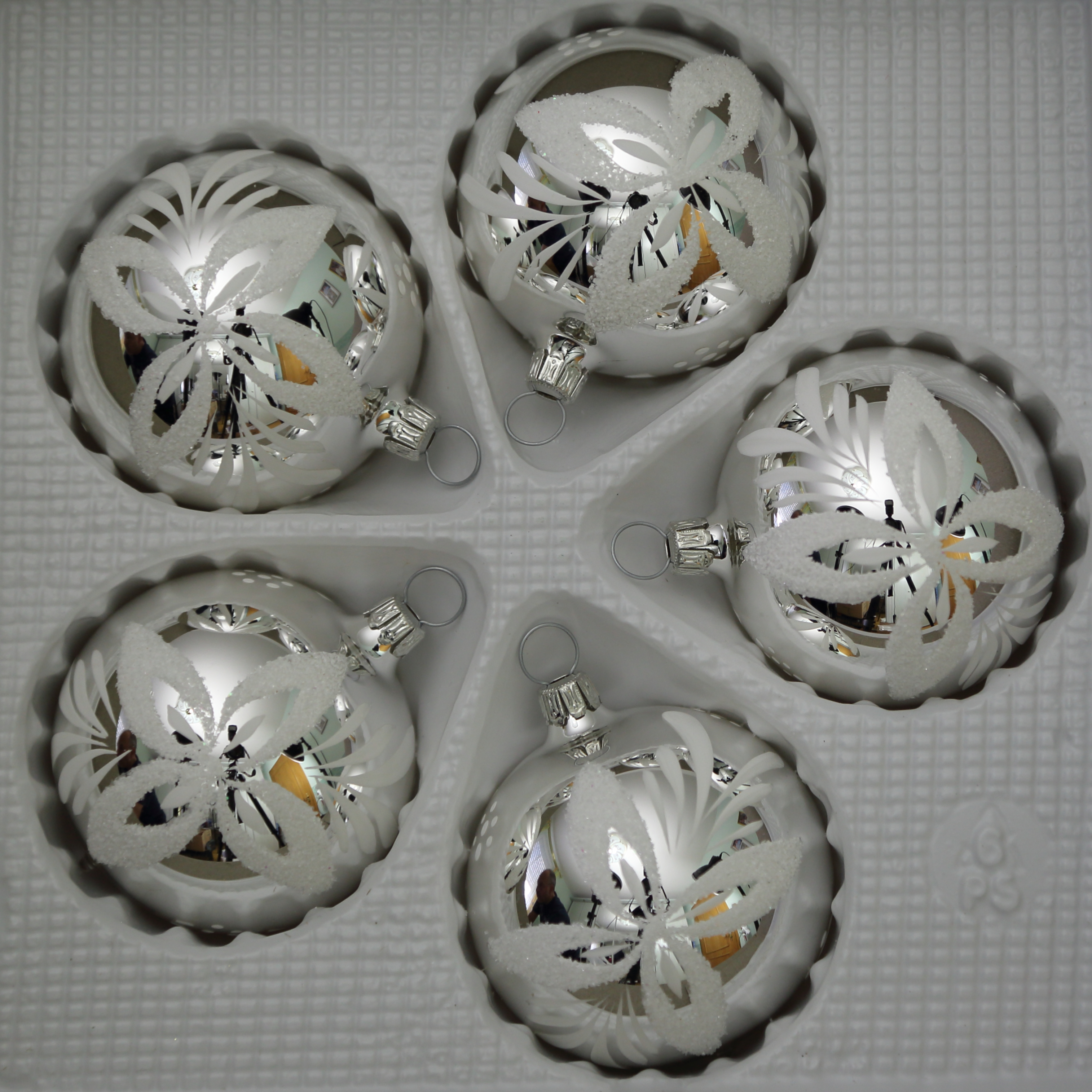 Kugeln silber mit Blumendekor, 5 Stück, d 6cm