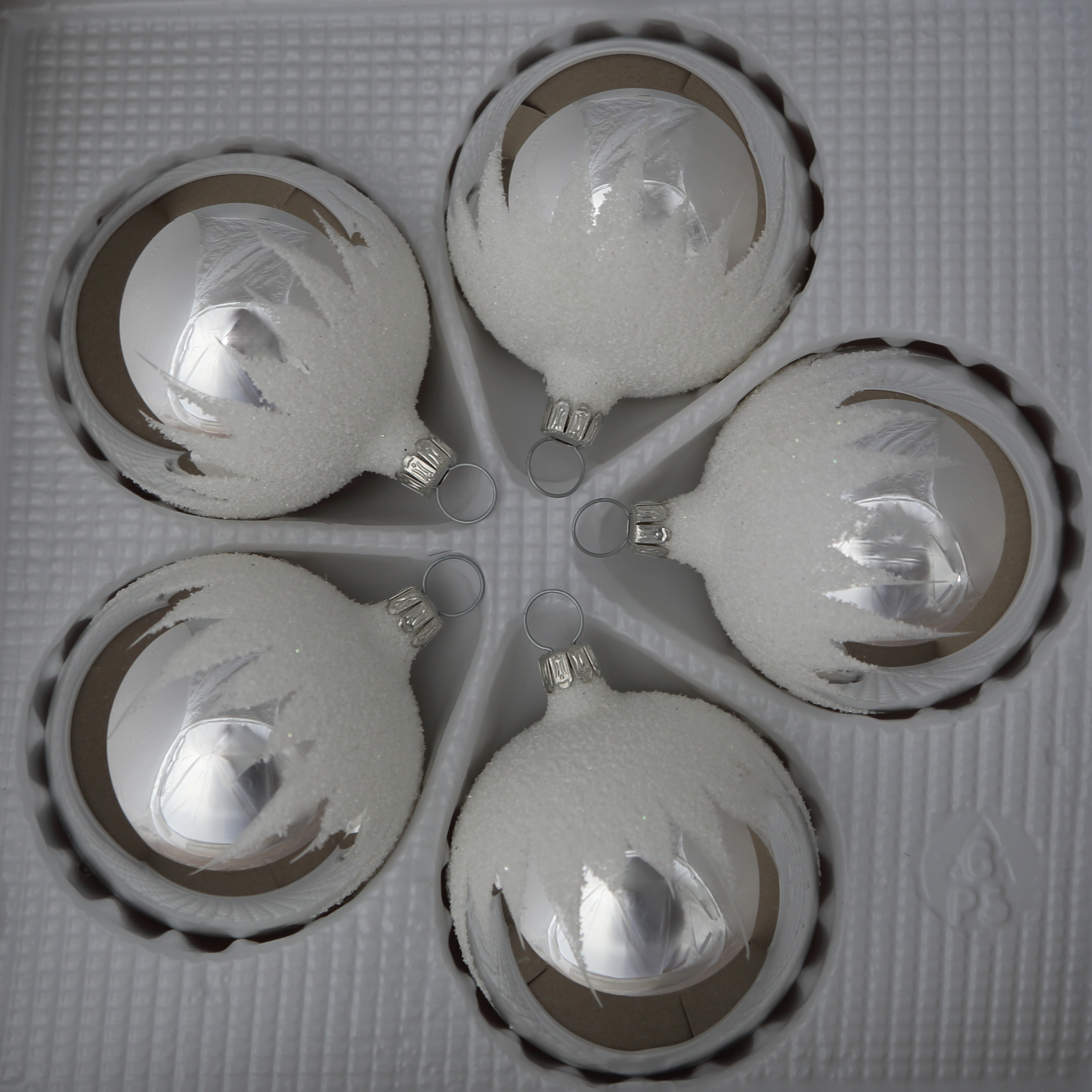 Kugeln silber mit Schneedachdekor, 5 Stück, d 6cm