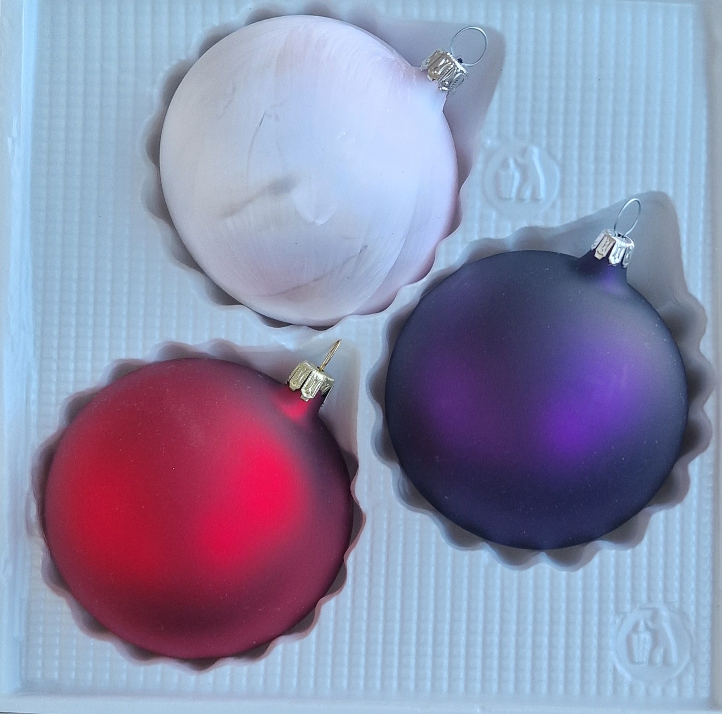 Kugeln uni, 3 verschiedene Farben, d 8cm, 2. Wahl