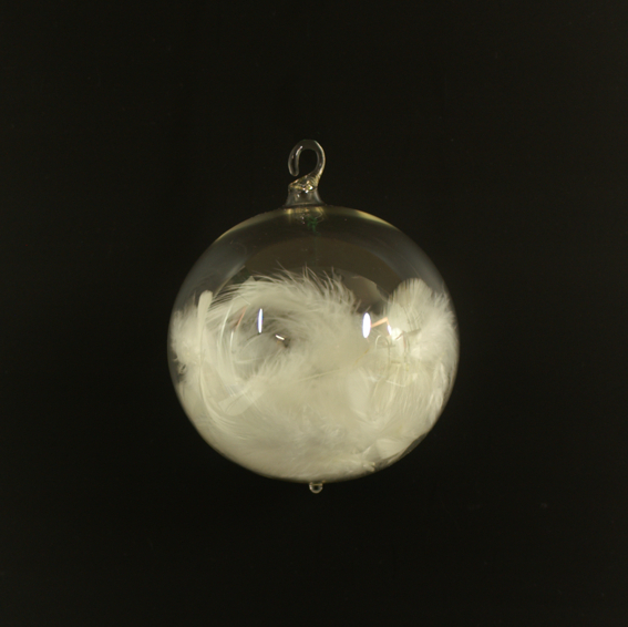 Lauschaer Glaskugel mit Federn klarglas mit Öse