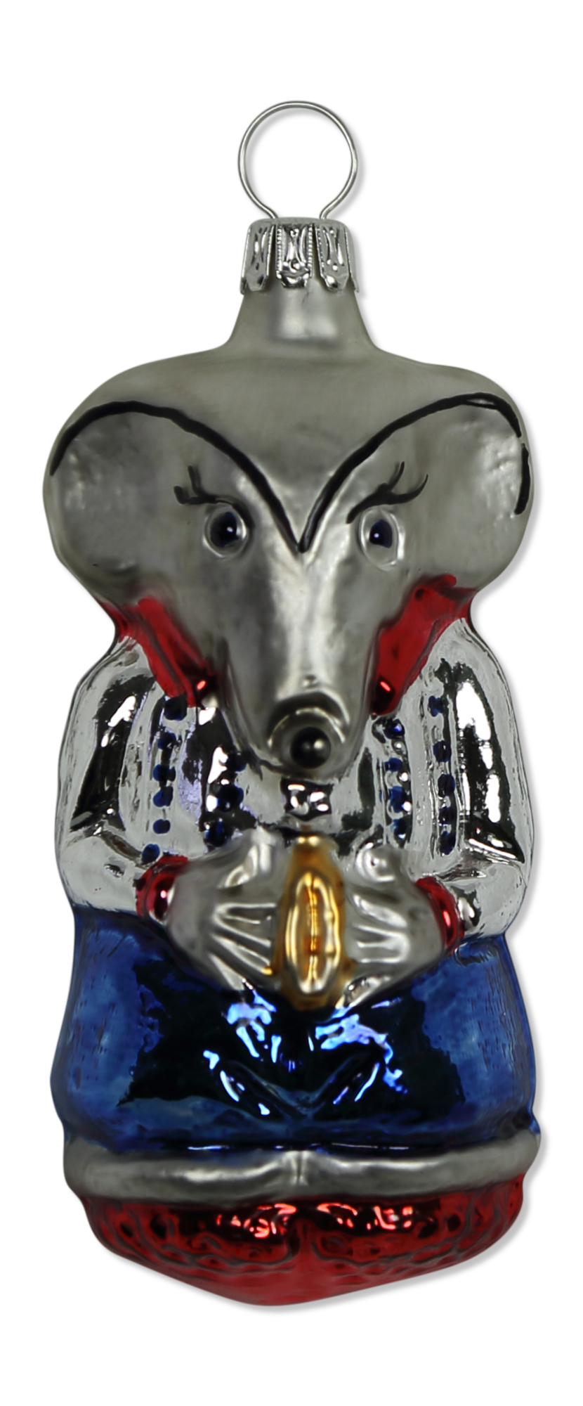 Maus, rauchsilber matt, blau und rot, L 10cm