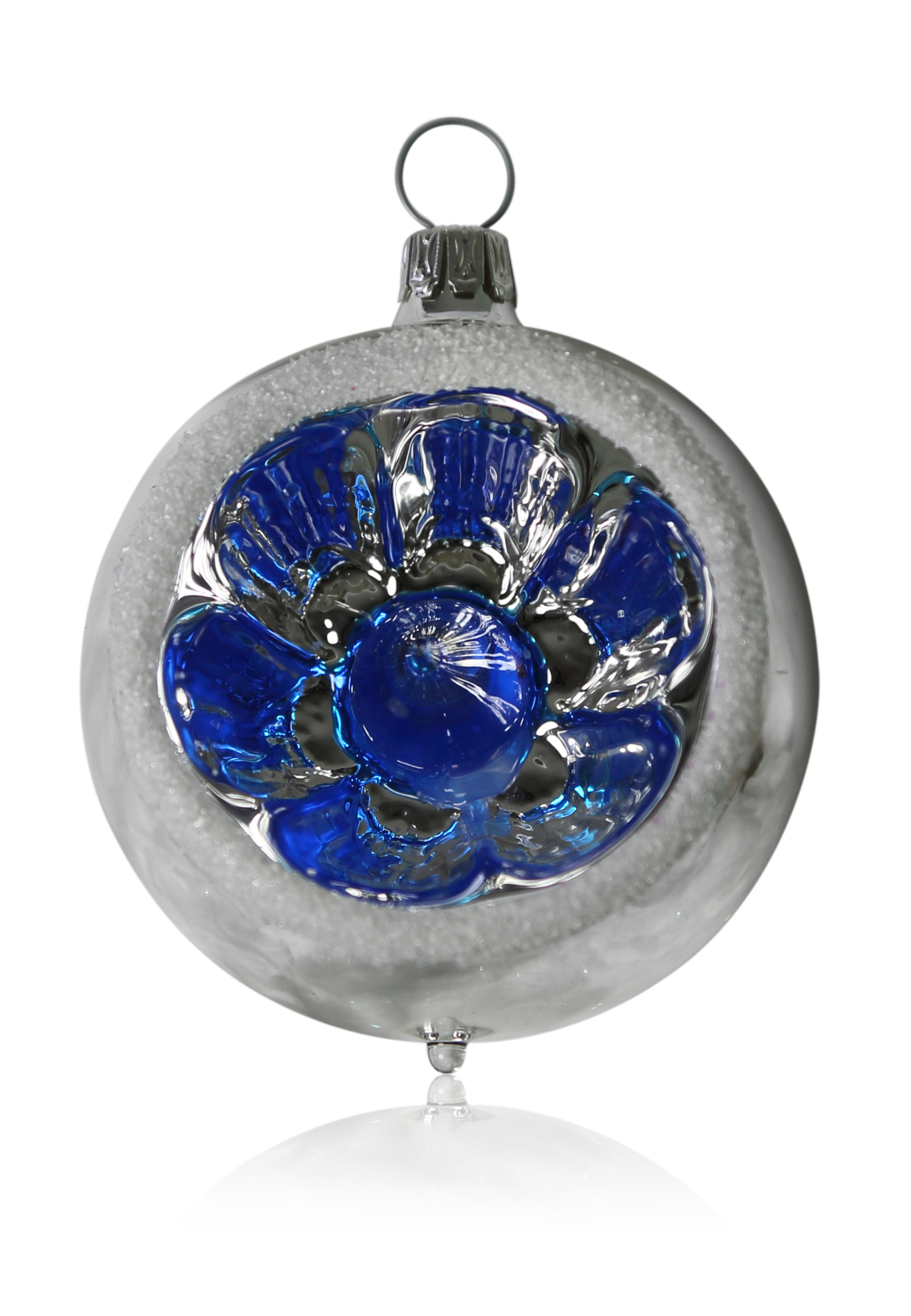 Nostalgiereflex mit Flüssigkeitskugel im Einstich blau, d 6cm