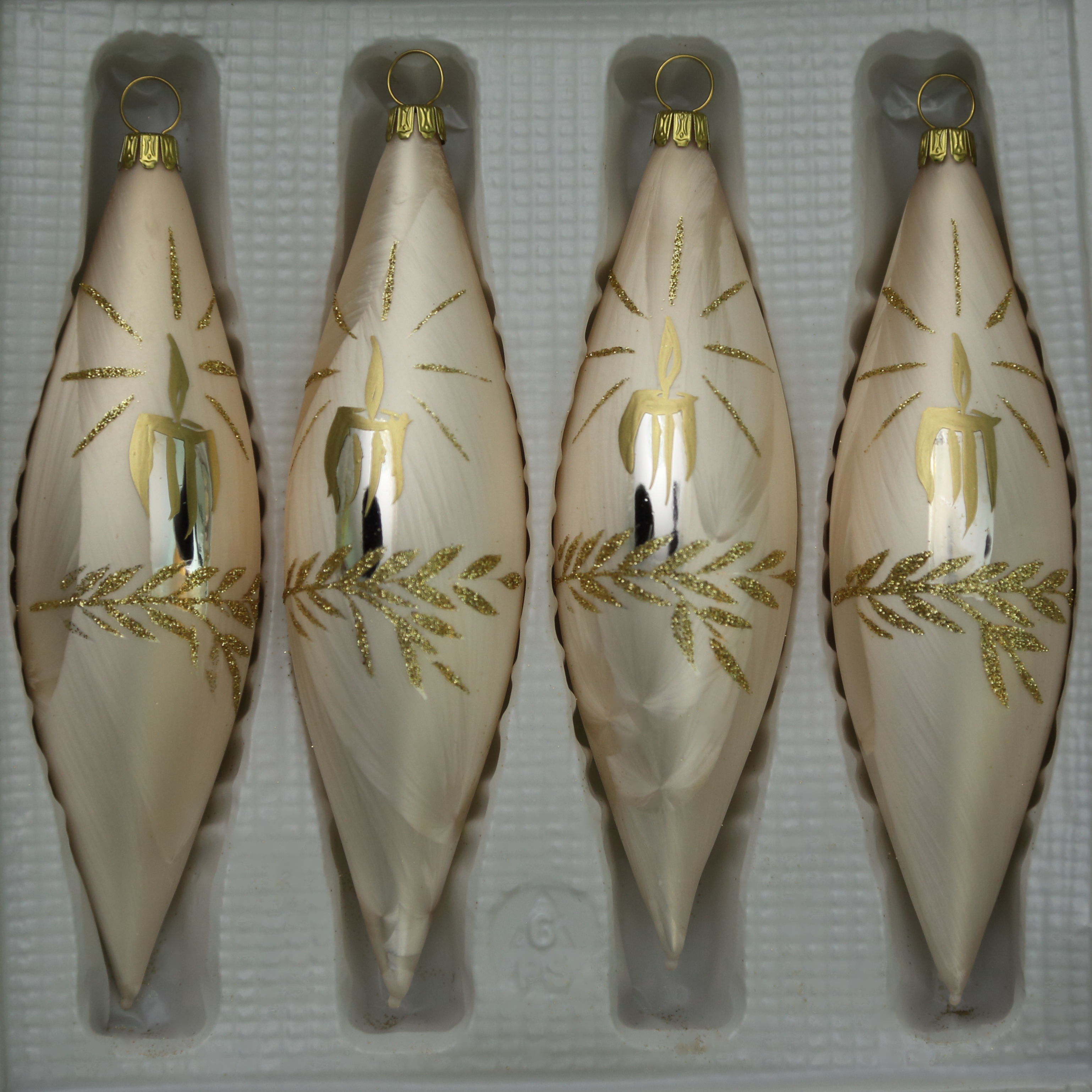 Oliven Eislack champagner mit Kerzendekor, 4 Stück, L 14cm