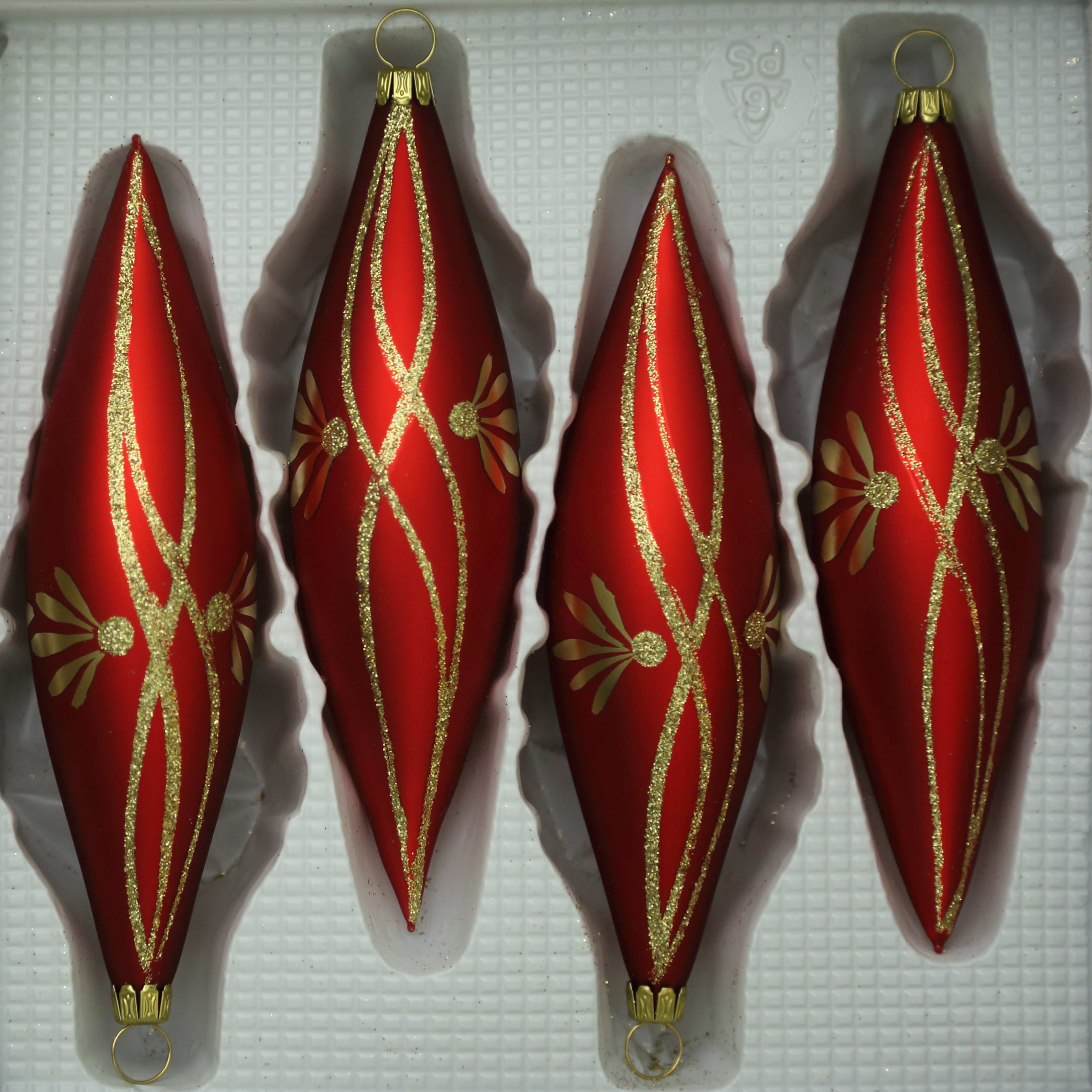 Oliven rot matt mit Rankendekor, 4 Stück, L 14cm
