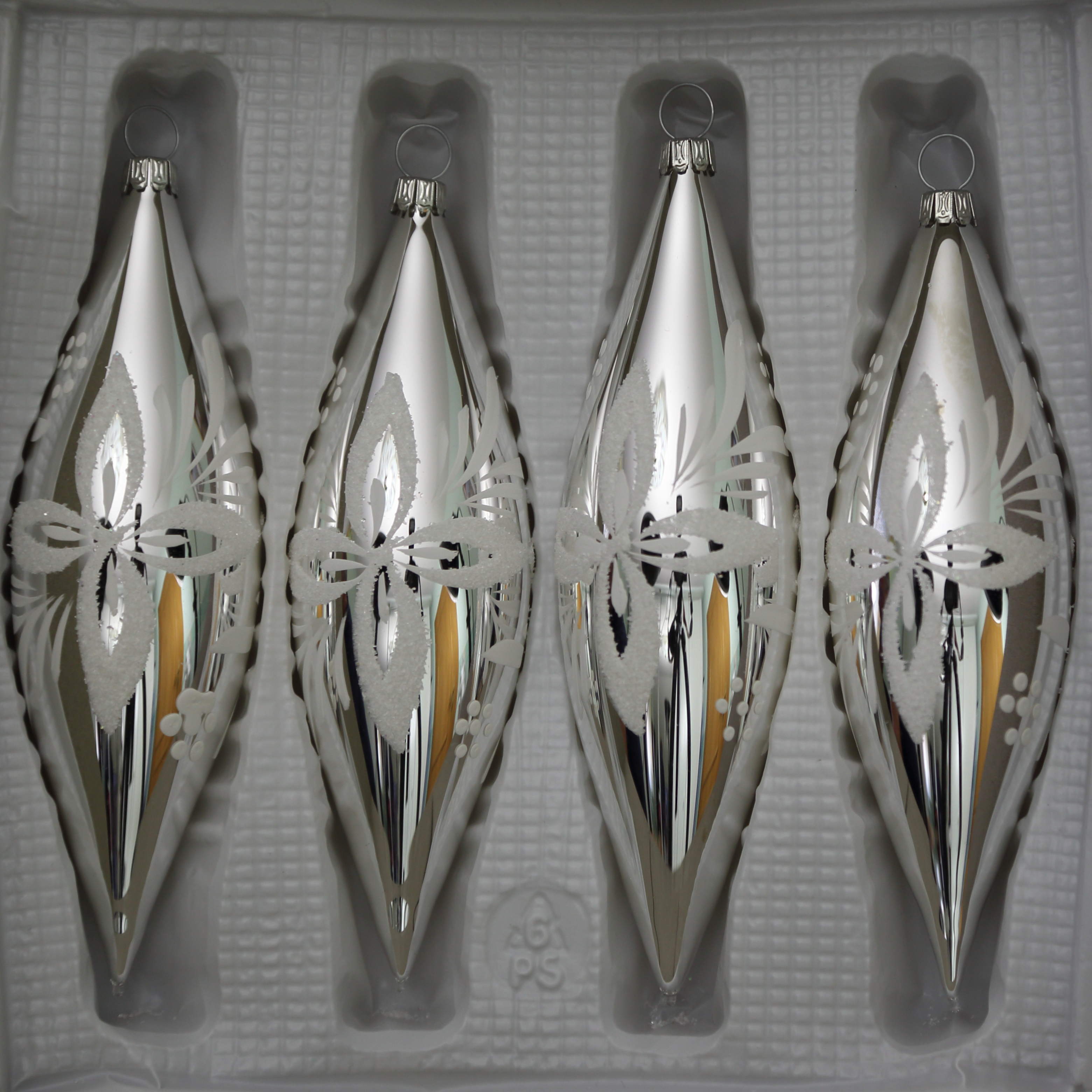 Oliven silber mit Blumendekor, 4 Stück, L 14cm