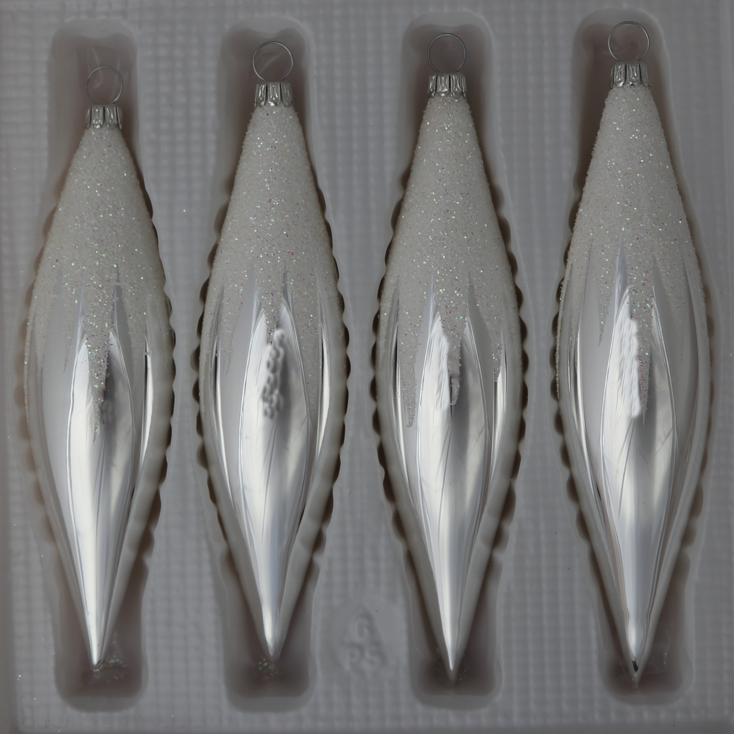 Oliven silber mit Schneedachdekor, 4 Stück, L 14cm