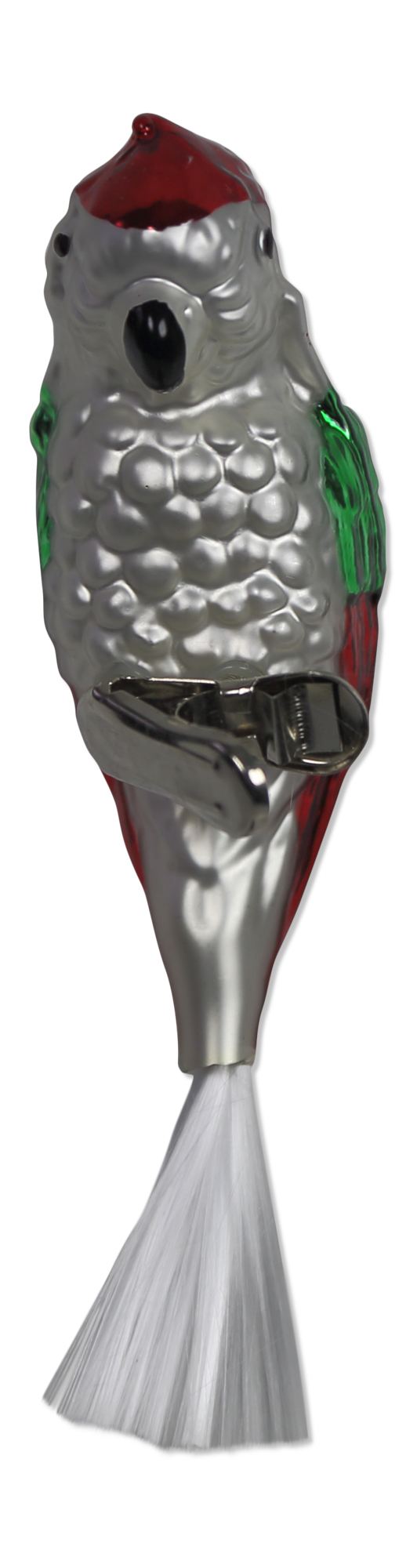 Papagei, weiß matt, rot/grün, doppelfüßig, L 14cm