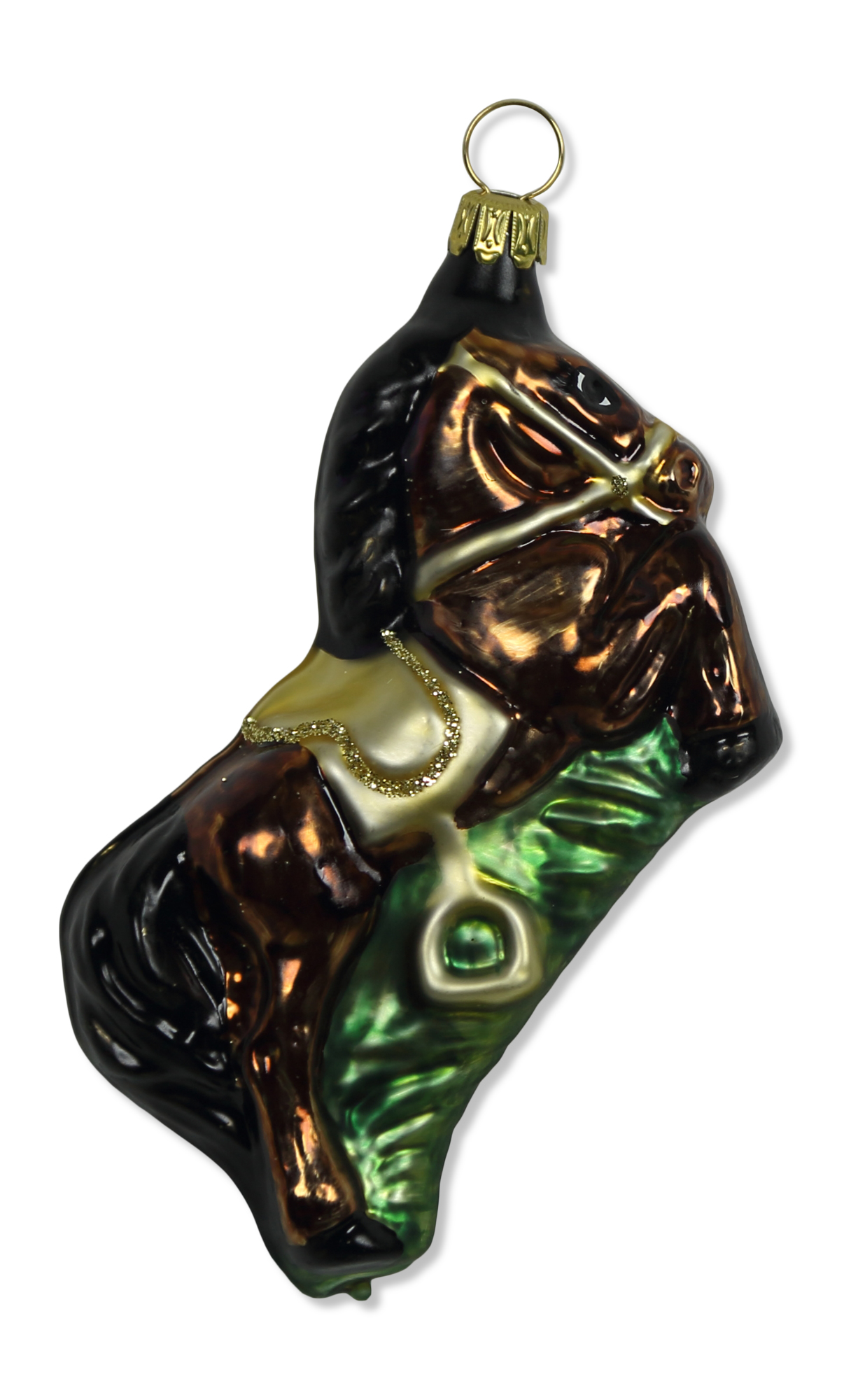 Pferd im Sprung, gold matt, schwarz, braun matt, tannengrün matt, Goldglimmer, L