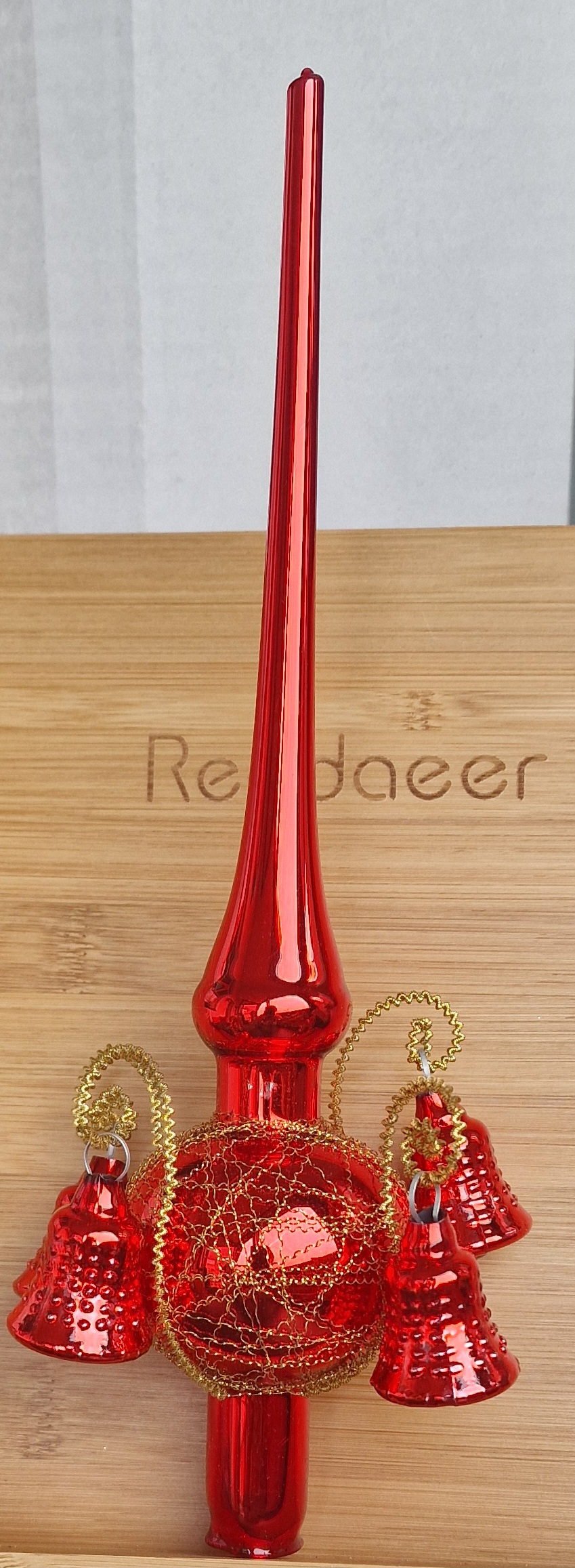 Spitze mit Formglöckchen rot glanz, umsponnen, L 27cm, d(Kugel) 6cm, 2. Wahl