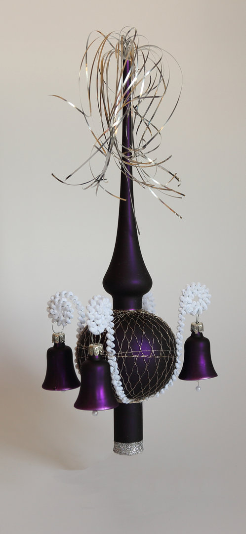 Spitze mit klingenden Glöckchen lila matt, umsponnen, L 28cm, d(Kugel) 7cm