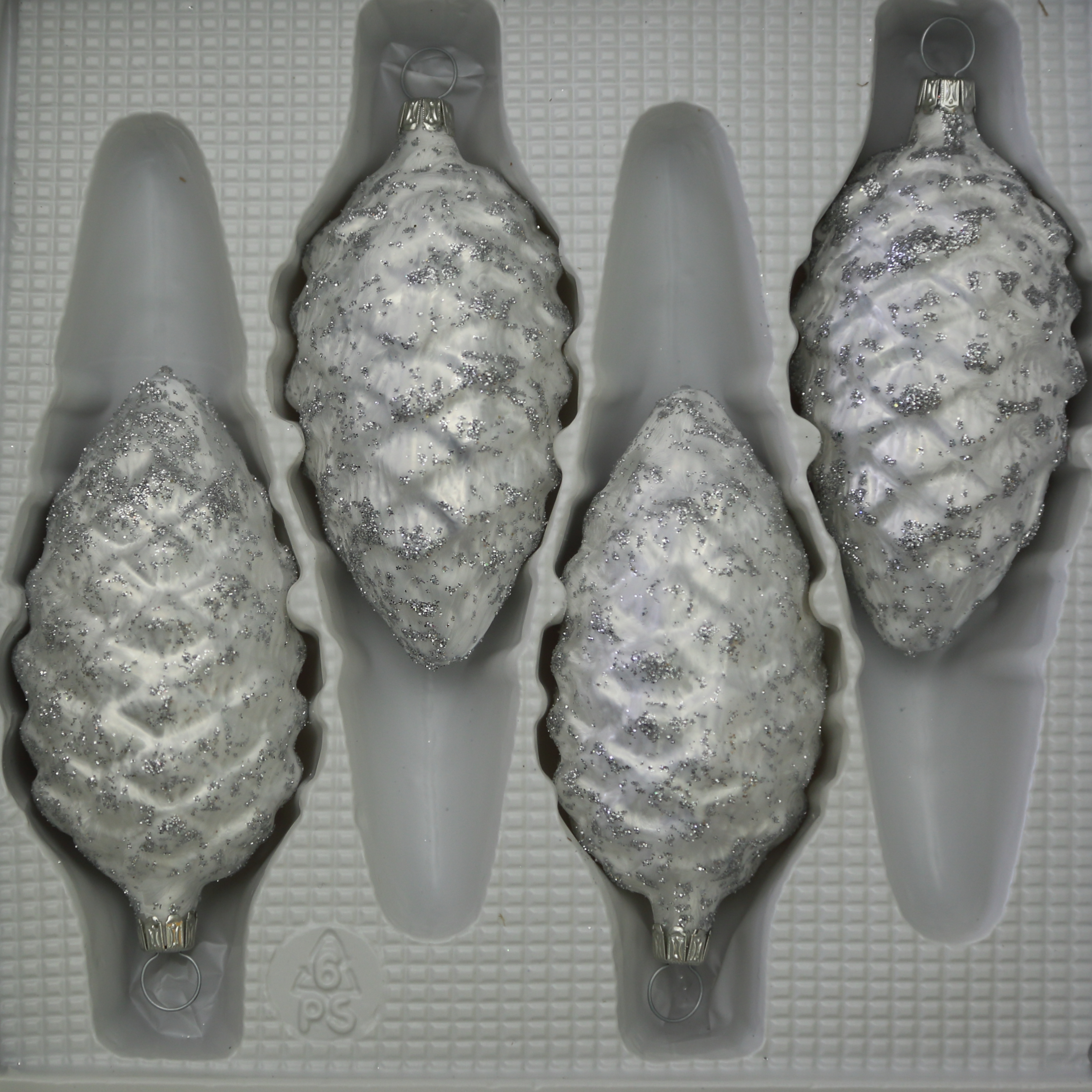 Tannenzapfen Eislack weiß mit Dekor, 4 Stück, L 9cm