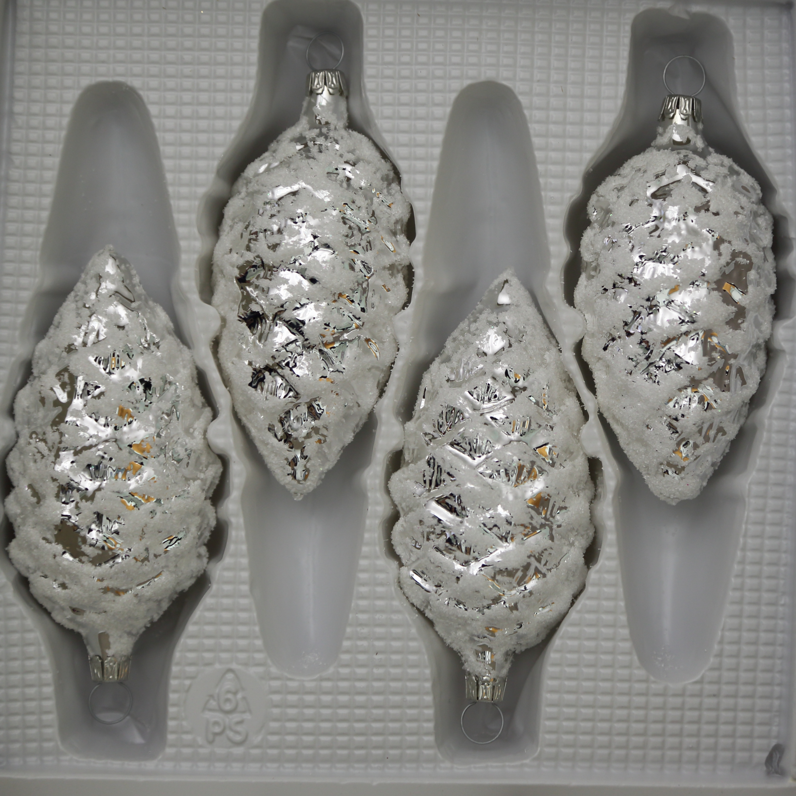 Tannenzapfen silber mit Dekor, 4 Stück, L 9cm