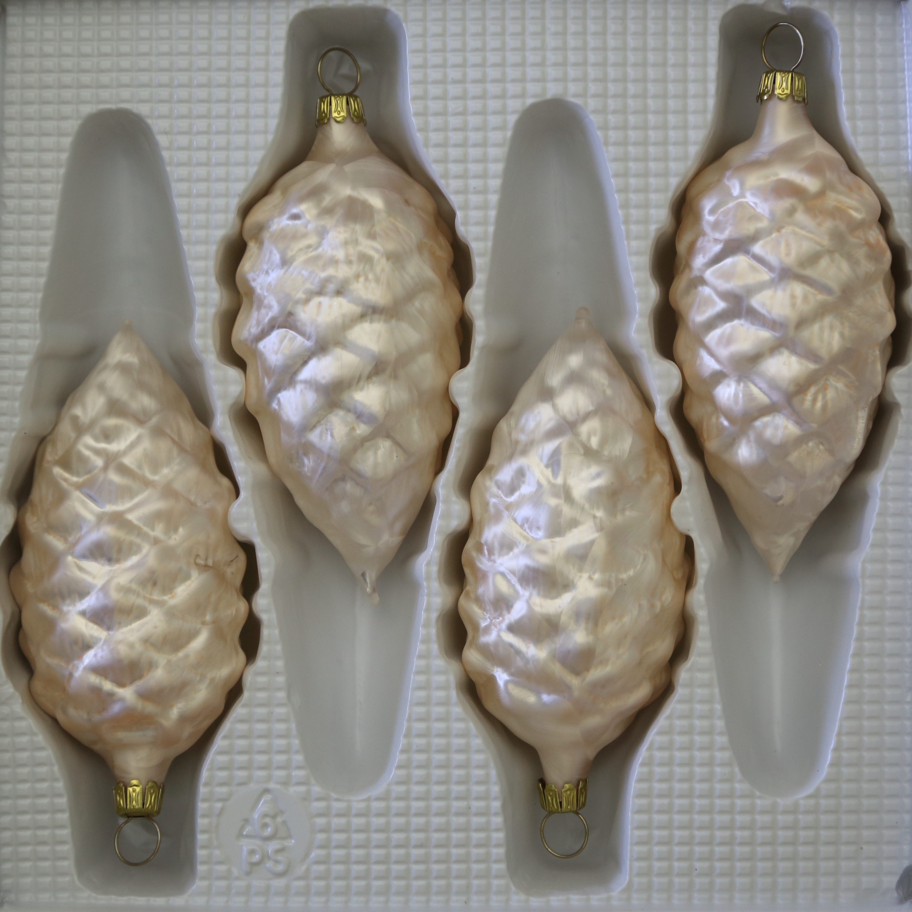Tannenzapfen uni Eislack champagner, 4 Stück,L 9cm