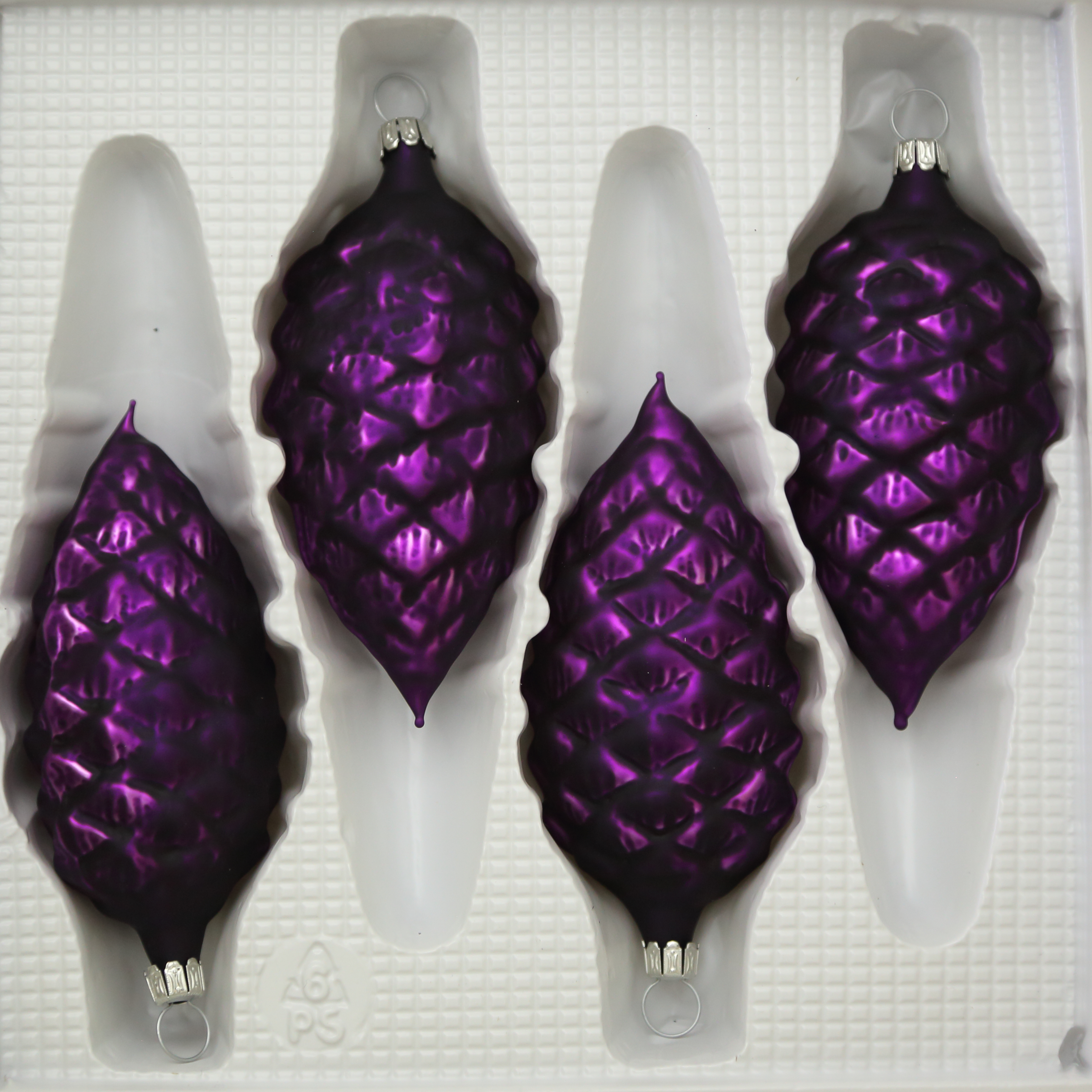 Tannenzapfen uni lila matt, 4 Stück, L 9cm