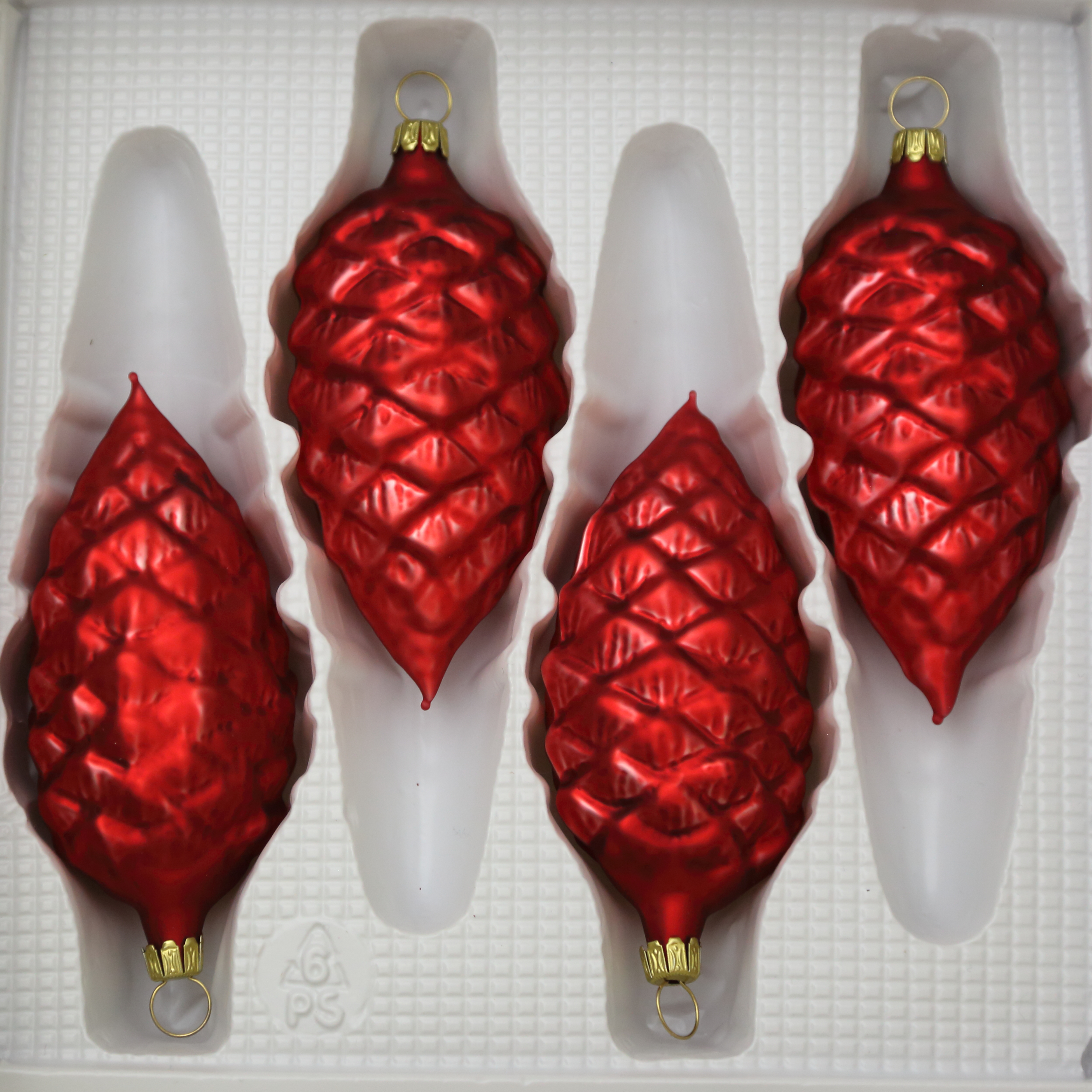 Tannenzapfen uni rot matt, 4 Stück, L 9cm