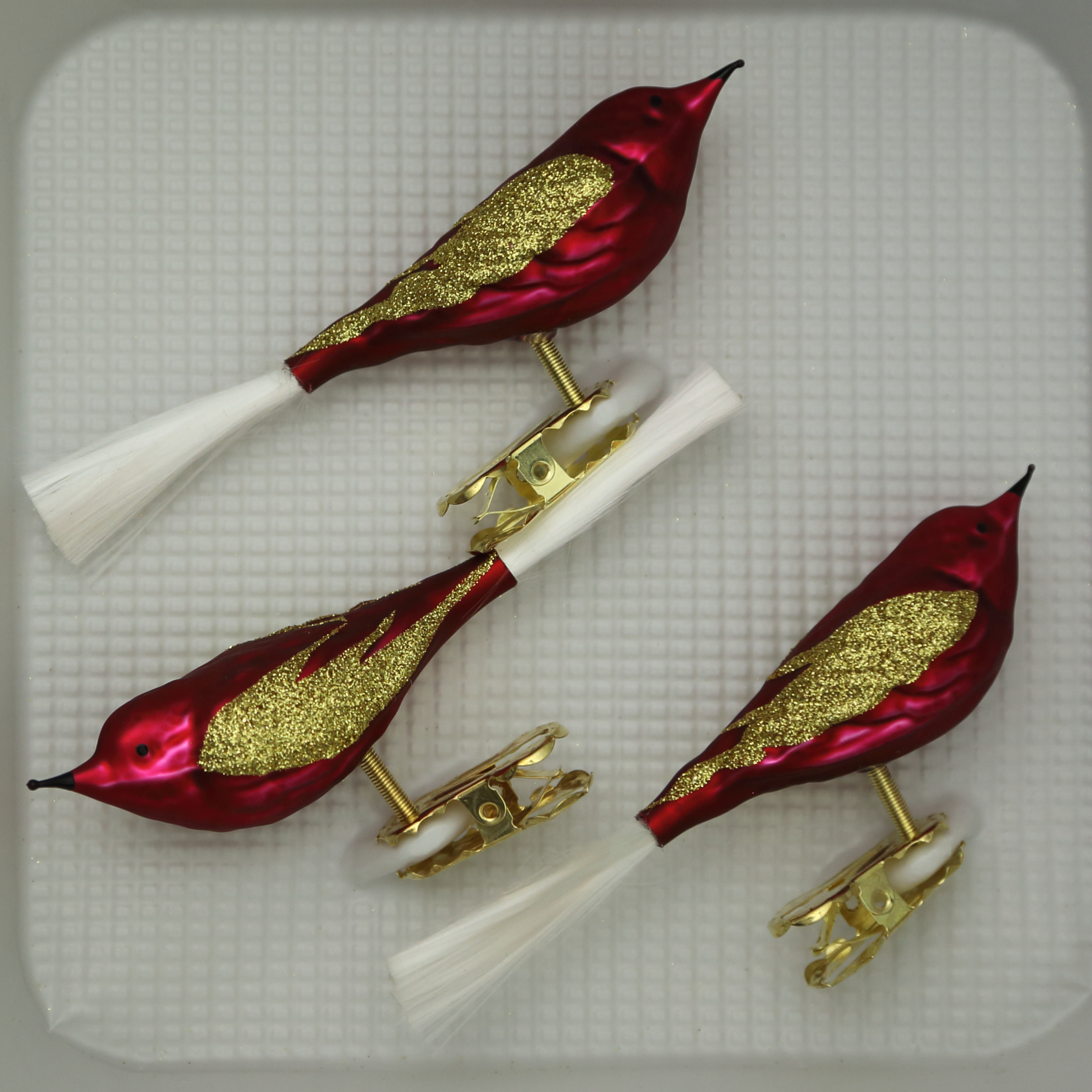 Vögel dunkelrot matt mit Dekor Glasschwanz, 3 Stück, L 11cm
