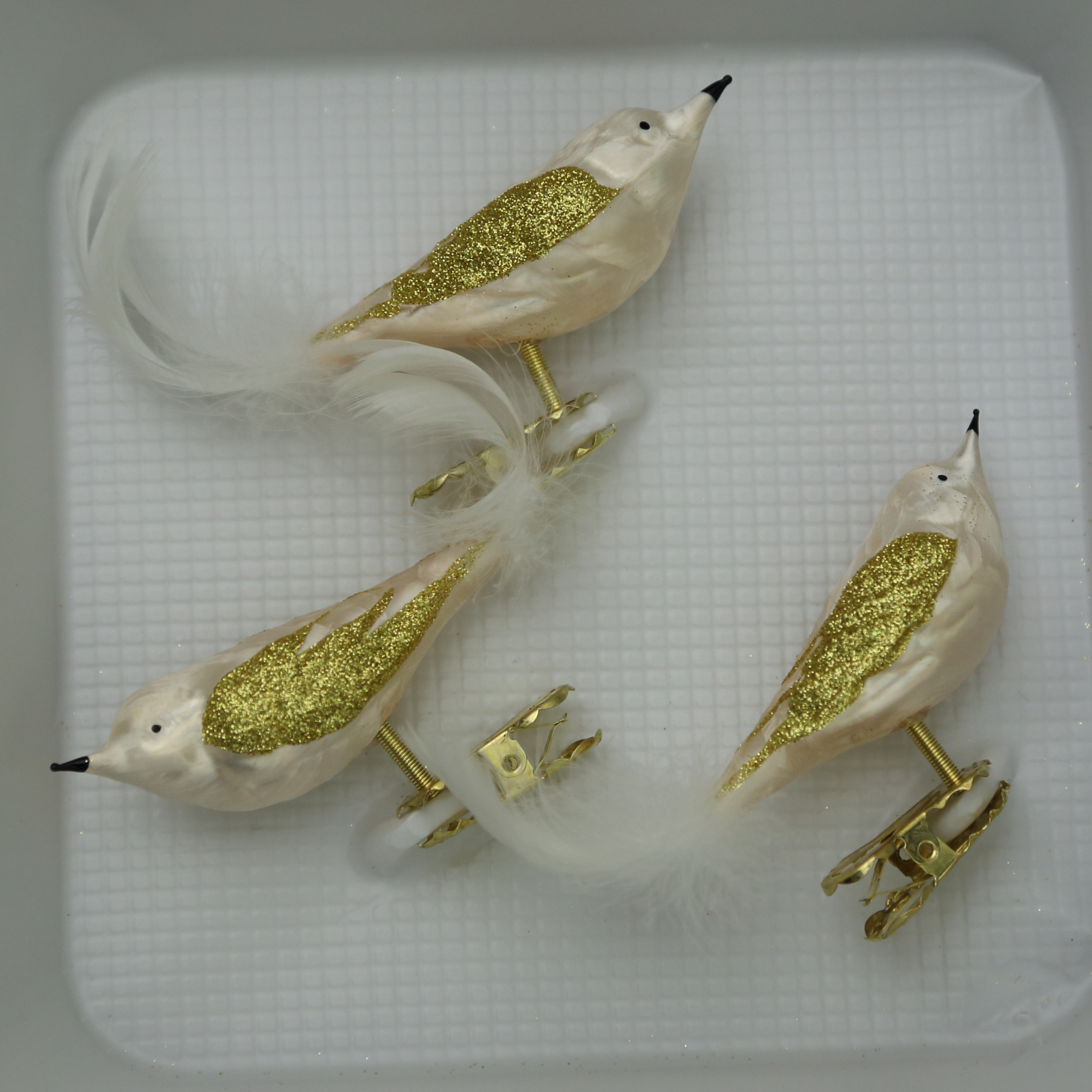 Vögel Federschwanz Eislack champagner mit Dekor, 3 Stück, L 11cm
