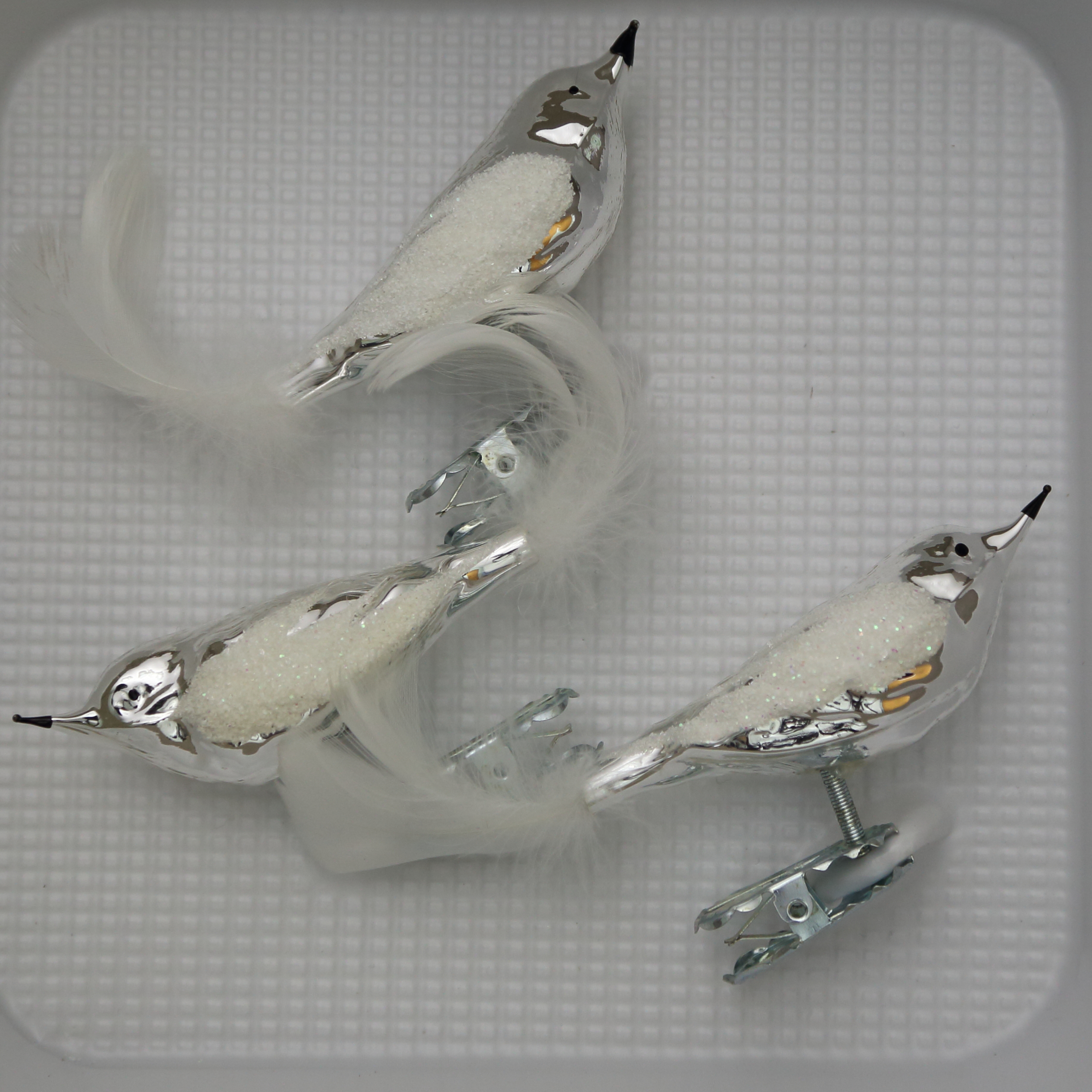 Vögel silber mit Dekor Federschwanz, 3 Stück, L 11cm