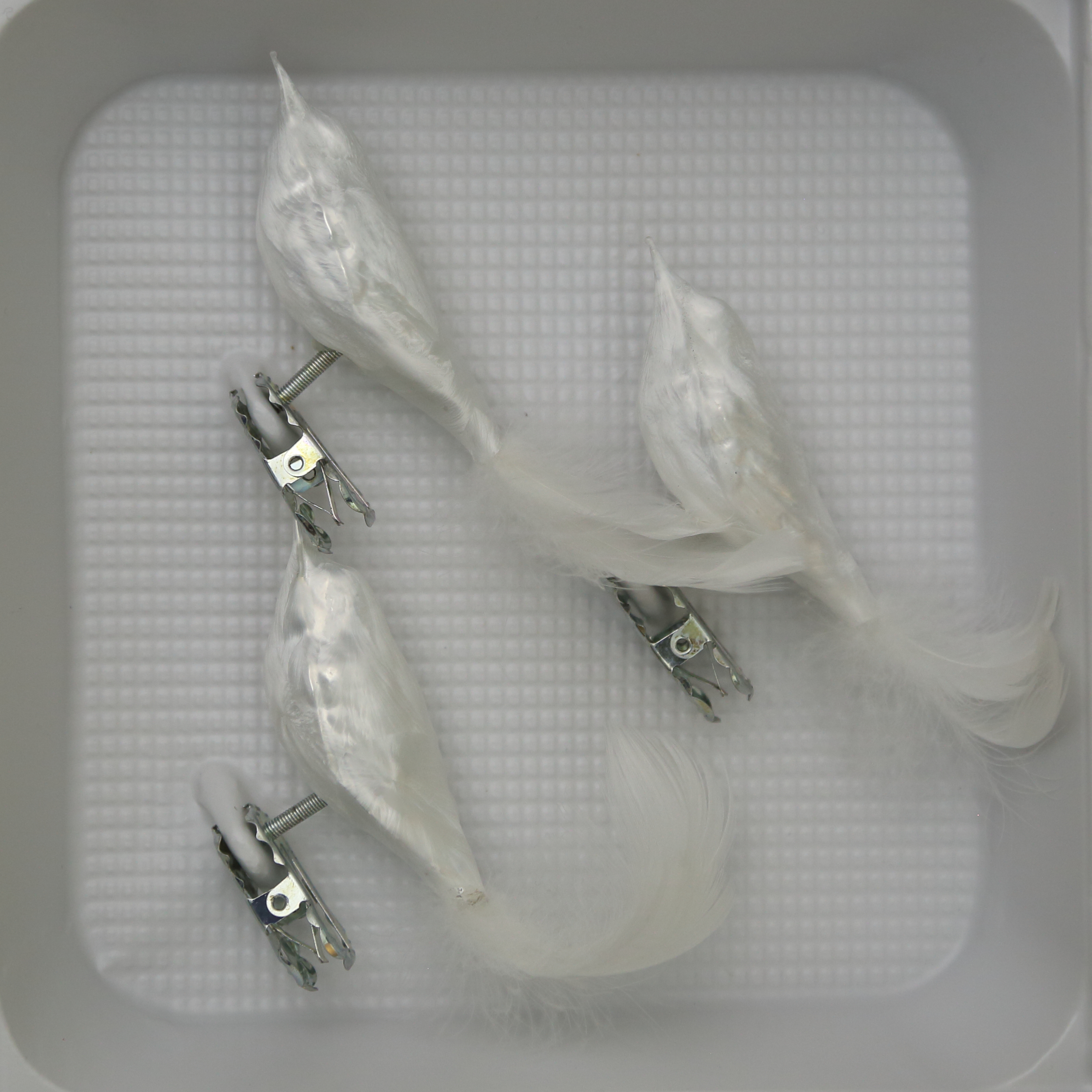 Vögel uni Federschwanz Eislack weiß, 3 Stück, L 11cm
