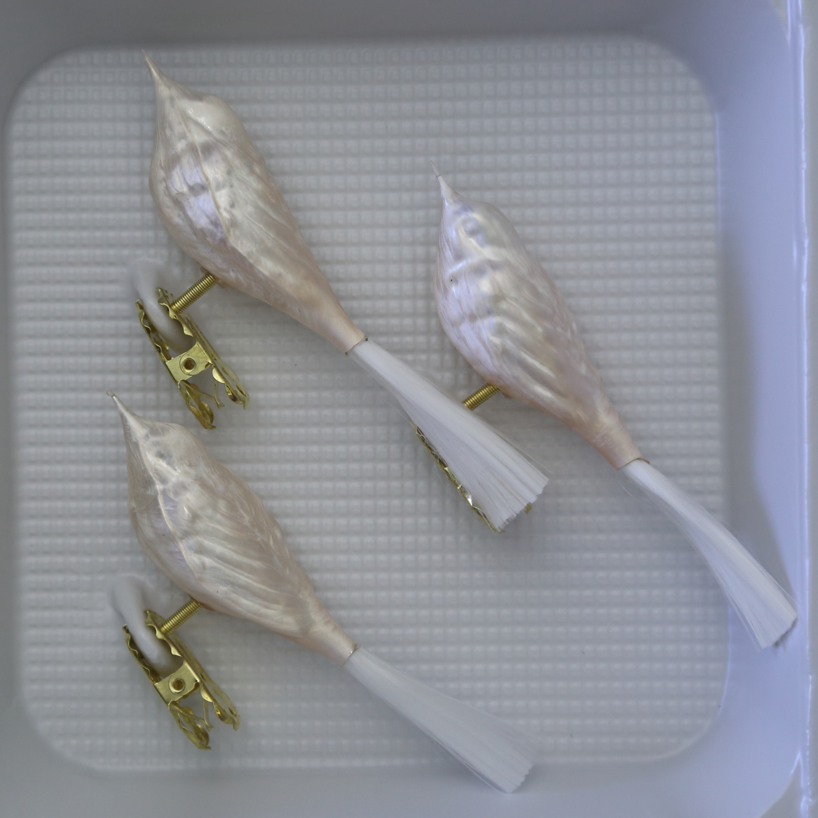 Vögel uni Glasschwanz Eislack champagner, 3 Stück, L 11cm