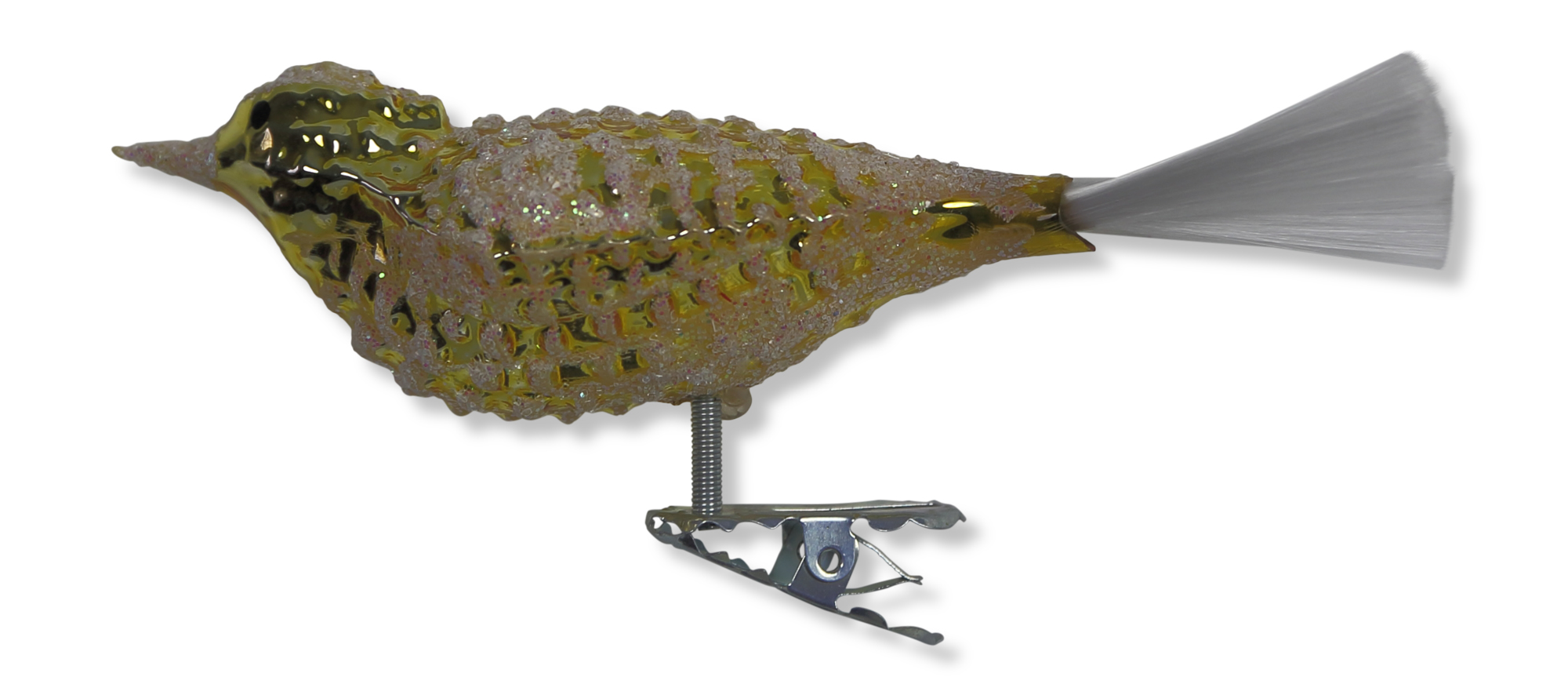 Vogel (mit Irisglimmer) gold glanz, L 14cm